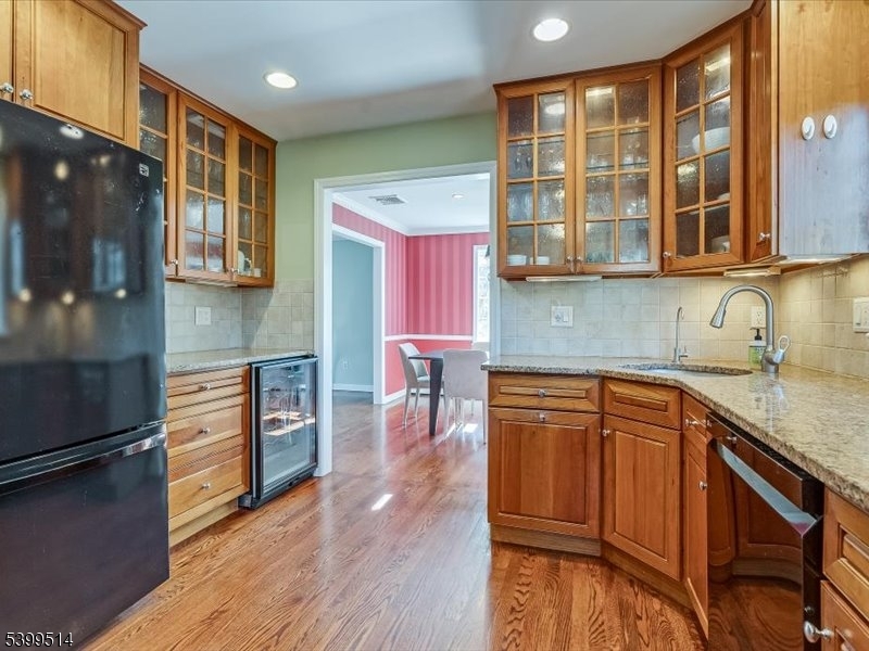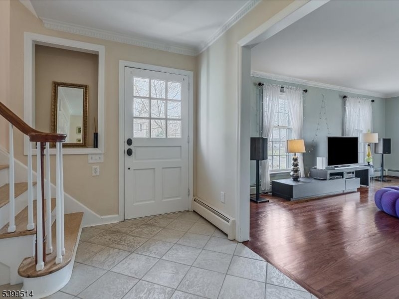 Discover an unparalleled opportunity to own a home that balances a beautiful .43 acre park-like property with modern updates. This location is 0.9 mile to the NJ Transit Train station and literally steps to schools, parks, and all that downtown Morris Plains offers. Lot is level and interesting with lovely private patio, open space to play, and amazing vegetable and flower garden. This impressive house demands a visit to fully appreciate its charm and functionality. Step inside to a welcoming entryway with double coat closet opening into a light-filled living room featuring oversized windows and hardwood floors that extend throughout the home. The heart of the home is an updated eat-in kitchen designed for easy living and entertaining, boasting granite countertops, stylish glass cabinets, and seamless access to the dining room and powder room. Enjoy flexible living spaces, including a bright sunroom addition that adapts to your needs as a family room or great room. A generous, front-to-back family room, (which could easily convert to a fourth bedroom), provides a cozy retreat with a wood-burning fireplace, laundry facilities, and ample storage. Upstairs, the primary bedroom offers a private, updated bathroom. Two additional bedrooms share an updated hallway bathroom. All bedrooms feature double closets, wood floors, and decorative moldings. Private bonus room in basement with access from garages. Public water and sewer, central air, baseboard hot water heat.Simply amazing!