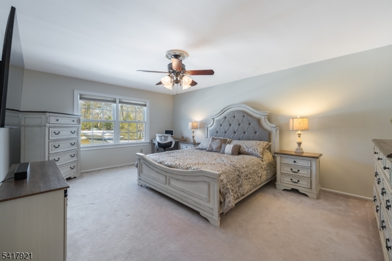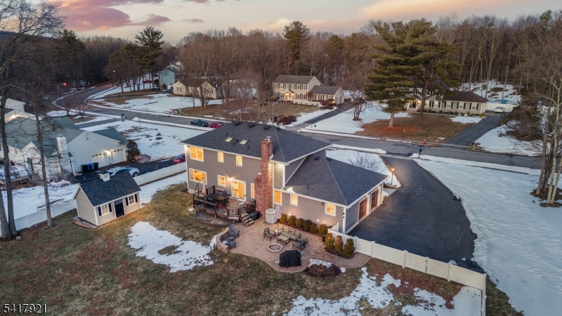 MODERN CHARM MEETS SUBURBAN SERENITY! 1 Radcliffe Drive is a tastefully refreshed 4-bedroom, 2.1 bath Center Hall Colonial that blends timeless architecture with modern updates. Set on 1.08 beautiful acres, this home offers the perfect balance of privacy and neighborhood living, just minutes from top-rated Roxbury schools, Horseshoe Lake recreation, and local parks. Arrive via the new driveway and step into a welcoming entry foyer. The formal dining room, highlighted by a large picture window, fills the space with natural light and creates the perfect setting for gatherings. The living room invites cozy evenings with its classic red brick fireplace and striking bluestone mantel. The eat-in kitchen is designed for both everyday living and entertaining, featuring custom cabinetry, luminous quartz countertops, and stainless steel appliances. Sliding doors lead to a large elevated deck overlooking the level, park-like backyard, complete with a propane fire pit and new PVC fencing for added privacy. Upstairs, the serene primary suite offers a beautifully renovated ensuite bath, while the hall bath has been refreshed with a new vanity and modern wood-look tile flooring. An expansive lower level provides flexible space for a gym, office, or recreation room. With a newly installed Tesla Wall Connector and convenient access to Route 10 and NJ Transit, this home truly has it all.