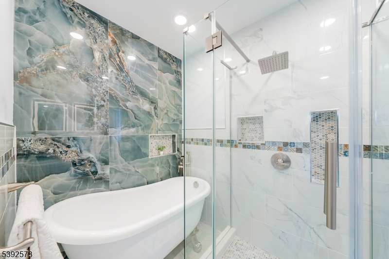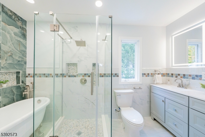 Everything old is new again in this flawlessly updated Colonial, located in the desirable Pleasantdale section of West Orange. Ideally situated on a quiet cul-de-sac, this perfectly curated home offers the perfect blend of modern style & everyday comfort. The inviting Living Rm features custom built-ins surrounding an electric Fireplace, creating a warm & welcoming space for relaxing & entertaining. The beautifully designed open concept Kitchen is a showstopper, boasting custom cabinets, a huge island, quartz countertops, stainless steel appliances, double wall oven & gas cooktop. The Kitchen flows seamlessly into the bright Dining Room with sliding doors leading to the rear deck, so easy for outdoor living & gatherings. An extra-large Family room has enough space to accommodate a first floor BR if desired. Powder Rm. Upstairs is where you will find the serene primary Bedroom featuring a high ceiling with skylight, generous closet space, and a luxurious en-suite Bath with double vanity, glass-enclosed shower, and soaking tub. Three additional Bedrooms and a full hall Bath complete the second floor. The spacious finished Lower Level is comprised of a Recreation Room with a decorative brick Fireplace, a full Bath, storage space galore and a convenient laundry area. Enjoy the best of suburban living, only 0.3 mile to the Jitney stop to NYC trains via BrickChurch or Orange train station. Nearby schools, parks and House of Worship. This move-in-ready home truly has it all!