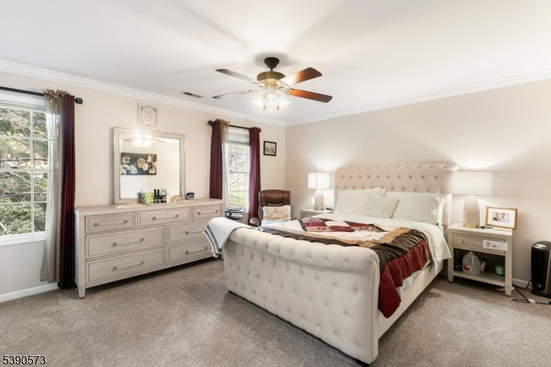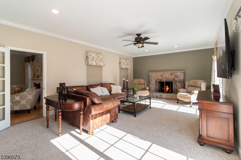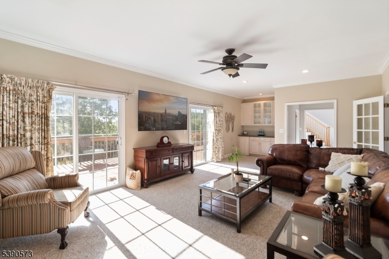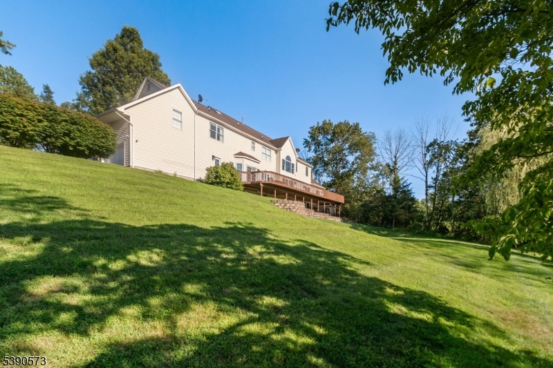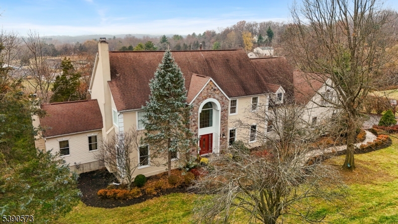 Welcome to 10 Blue Cliff Dr, a beautifully maintained 4,462 sq ft home featuring 4 bedrooms and 4.5 baths, set on 3.37 private acres in Clinton Township, Hunterdon County. A dramatic two-story staircase and newly painted living areas create a bright, welcoming entry.The main level includes a large first-floor bedroom/den equipped with double closets and direct access to a full bath, offering excellent flexibility for guests or a home office. The family room features two sets of sliding doors that open onto the impressive 100-foot deck, ideal for entertaining and enjoying the scenic views.The home offers a spacious granite kitchen and a wet bar in the family room. A walkout, unfinished basement provides exceptional potential for additional living space once completed. Located in an area known for top-rated schools and convenient highway access.