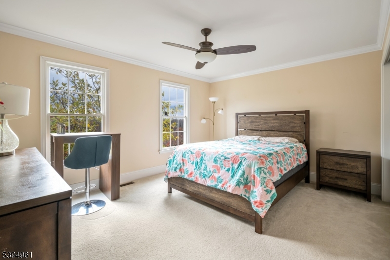 Spectacular 4,547 sf Colonial set on a beautifully landscaped and private 1-acre lot! Step into the grand, 2-story sun-filled foyer and be welcomed by the elegant formal living room and dining room featuring crown molding, chair rail, pillars, and hardwood floors. The first floor also offers a private home office and an impressive gourmet kitchen with center island, stainless steel appliances, butlers pantry with 2 wine refrigerators, and seamless open concept to the spacious family room with fireplace-perfect for entertaining. The second level boasts a luxurious primary suite with two walk-in closets and a spa-like ensuite bath. A Princess Suite with its own private bath, Jack & Jill bedrooms with a shared bath, a large recreation room or in-law suite, and an additional den complete the upper level. A full basement provides endless possibilities for future finishing and expanded living space. This home offers comfort, versatility, and upscale living in a serene setting-only minutes from Routes 80, 46, 206, 10, mass transit, lake, shopping, and excellent school system.