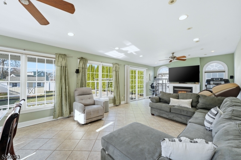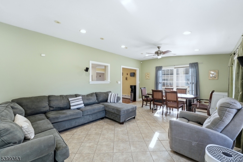 Welcome to this inviting three bedroom, two bathroom Cape Cod home with a layout that really lives large. The first floor offers a comfortable living room, formal dining room, and a bright kitchen that connects easily to the rest of the home. A first floor bedroom and full bathroom add convenience and flexibility. The expanded great room along the back of the home is a standout feature, with heated tile flooring, a gas fireplace, and high velocity air conditioning, creating a space you can enjoy in every season. Upstairs you will find two additional bedrooms and a full bathroom. The partially finished basement provides even more usable space with a bar area, laundry, storage, and a walkout to the backyard. Outside, enjoy a patio for outdoor seating and a storage shed for tools and equipment. This home offers multiple gathering areas, thoughtful updates, and a yard that is ready for everyday living or entertaining.