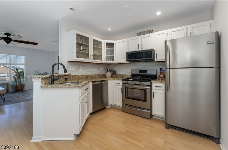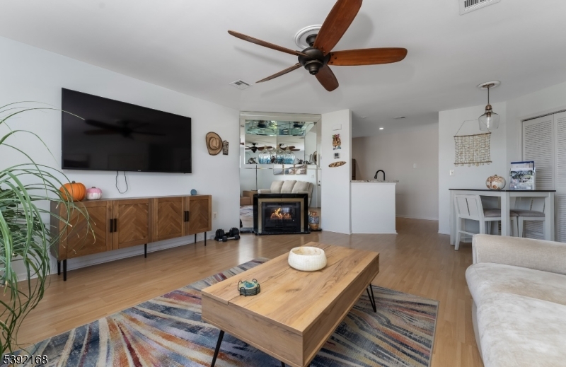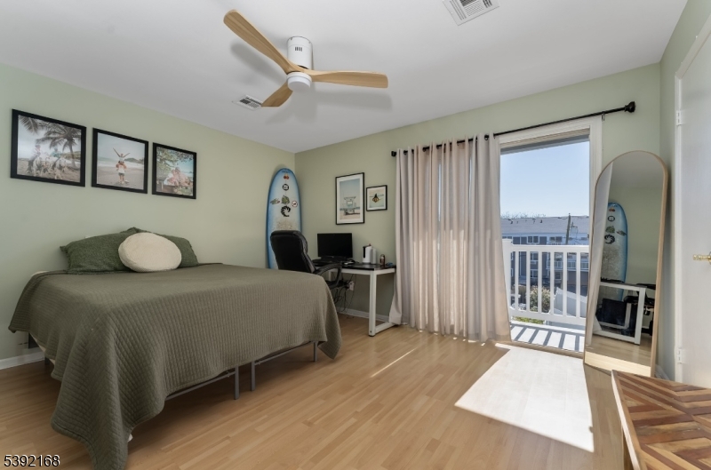 PRIME LOCATION, a fantastic opportunity to own a NJ Beach property in BRADLEY BEACH. Renovated (2024) Kitchen and Bath, one Bedroom, one Bath, second-story Condo with fireplace and back balcony, one block from the Beach. Living room is open to a Dining area and Kitchen, updated with hardwood floors, granite and stainless appliances. Bedroom includes a walk-in closet and sliding glass doors out to Balcony with a slice of an ocean view. Fully renovated Bathroom with large tiled Shower. Fresh paint throughout. Exterior updates to Roof and Decks. This open floor plan allows for cozy living, weekends at the Beach and a potential rental opportunity. Bradley Beach is friendly and happy all year round. Close proximity to transit, one hour from NYC and Philly. Assigned parking spot.