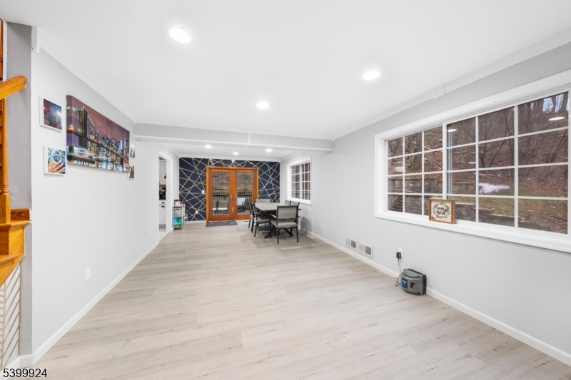 Beautifully updated Colonial nestled on 4 private acres in peaceful Knowlton, NJ. Enjoy a charming covered front porch, landscaped grounds, and serene natural surroundings. This home offers 4 bedrooms, 2.5 baths, a large 2-car garage, and spacious indoor/outdoor living areas. The open kitchen features granite countertops, stainless steel appliances, and a generous dining area. The inviting family room highlights a stone fireplace and oversized picture window with gorgeous views. A first-floor office with French doors is perfect for working from home. Formal dining/living rooms open to an expansive rear patio ideal for entertaining. New LVP flooring throughout the first level. Upstairs, the primary suite includes two cedar walk-in closets, a skylight ceiling, and a private bath. Three additional bedrooms and a full bath complete the second floor. The basement provides excellent storage, flexible space, and a small wine cellar/craft room. Recent updates include a **brand-new stove, microwave, and garage door openers. A rare combination of beauty, privacy, and comfort move-in ready and truly special.