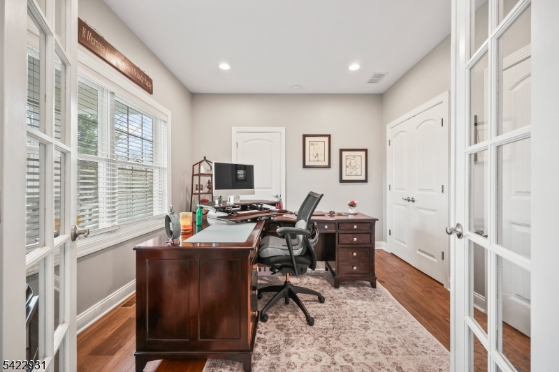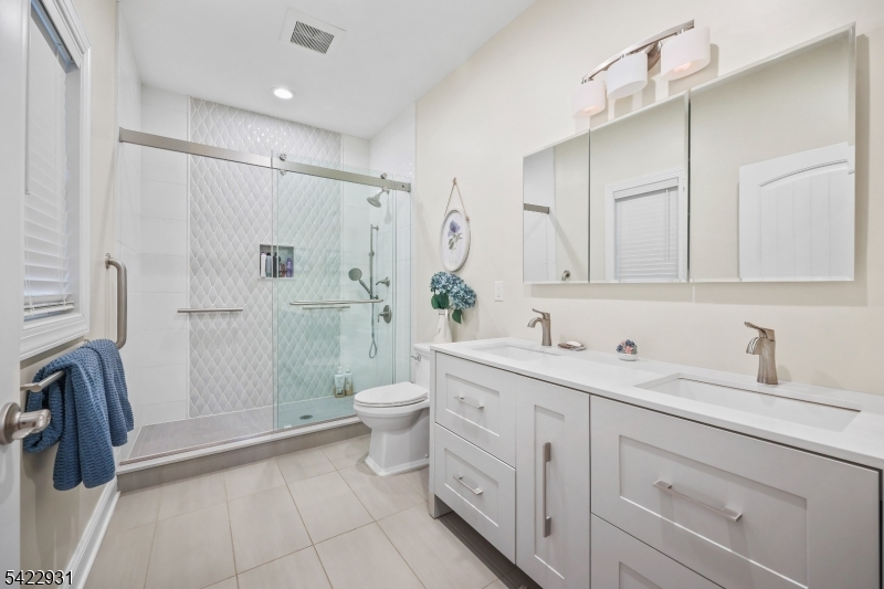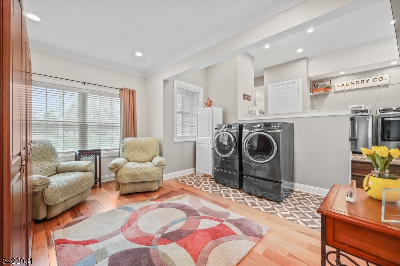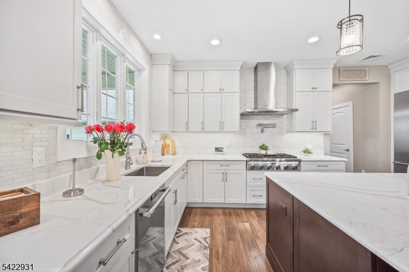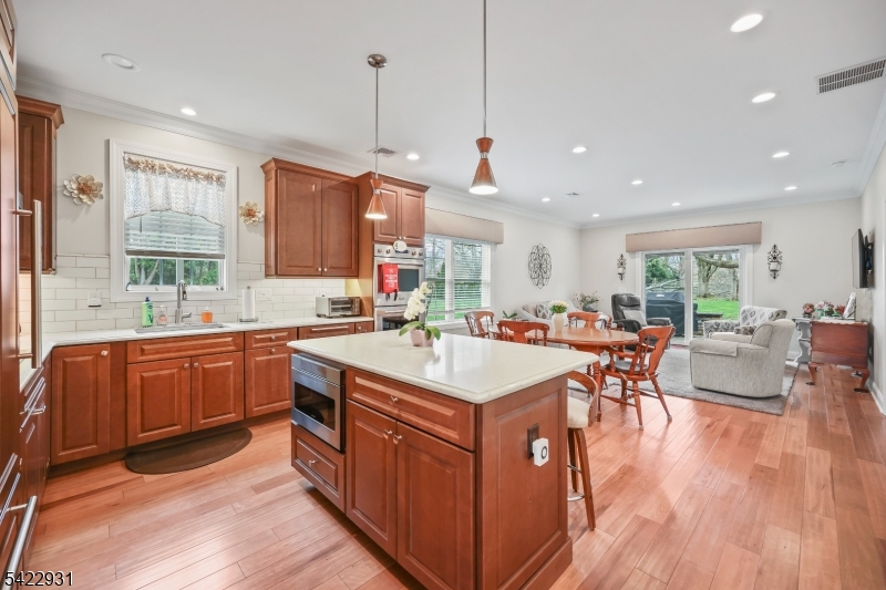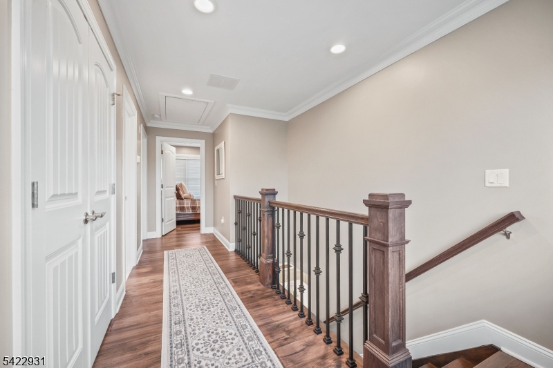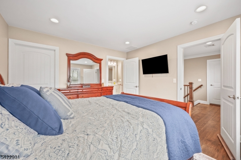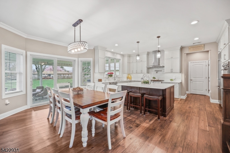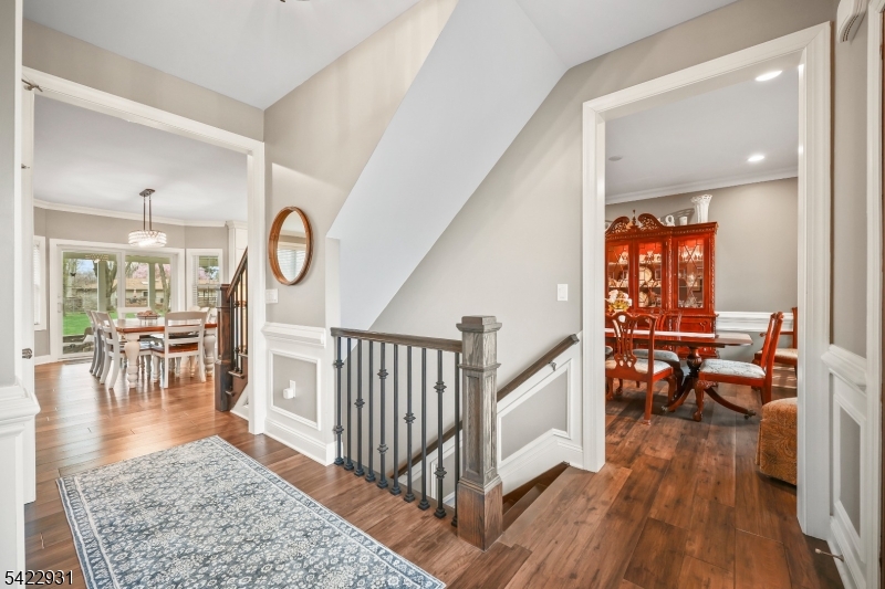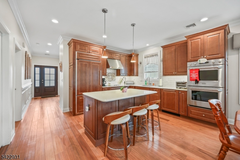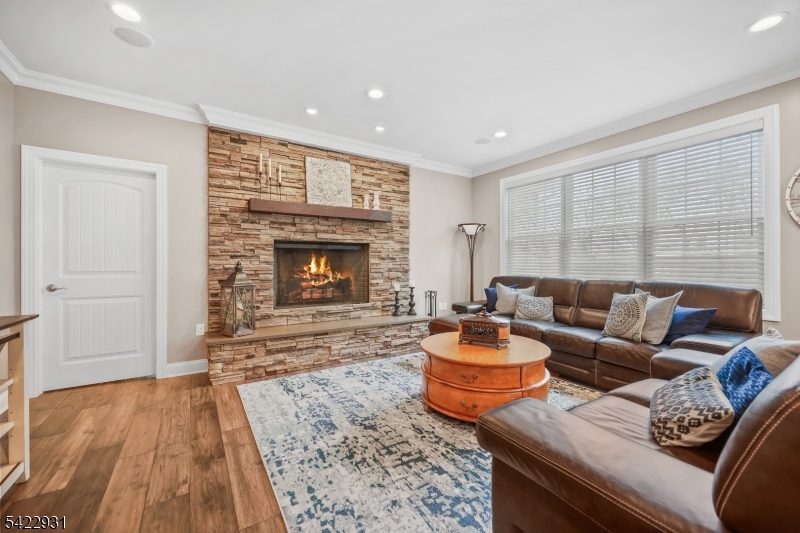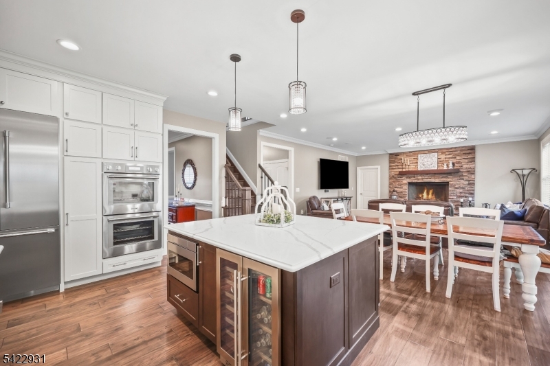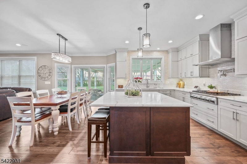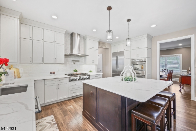 Welcome to this exceptional 6+ bedroom, 5.5 bath multigenerational estate, thoughtfully designed for flexible living, privacy, and comfort. Nestled on nearly 1 acre in a beautifully set-back location, this impressive property offers the perfect blend of luxury, space, and functionality. The main level features 2 spacious primary suites, each with its own private en-suite bath, making it ideal for multigenerational living or guest accommodations. In addition, there are two versatile den/guest rooms that can easily serve as home offices, playrooms, or additional sleeping spaces. Upstairs, you’ll find three generously sized bedrooms accompanied by one Jack & Jill style bath with private sink areas, plus one bedroom with direct en-suite bath access, and one den/guest area offering privacy and convenience for every occupant. Designed with separate living in mind, the home includes two full kitchens, separate laundry areas, private entrances for each side, and individual patio spaces, creating an ideal setup for extended multi-generational living, or private guest quarters. The main home showcases engineered wood flooring throughout, recessed lighting, a wood-burning fireplace, and a stunning chef’s kitchen complete with a large quartz center island and premium Thermador appliances including 6 burner stove ,double oven, beverage fridge and swing arm pot filler. Additional features include multi-zone heating & central air, finished basement with rough plumbing for a full bath.