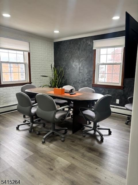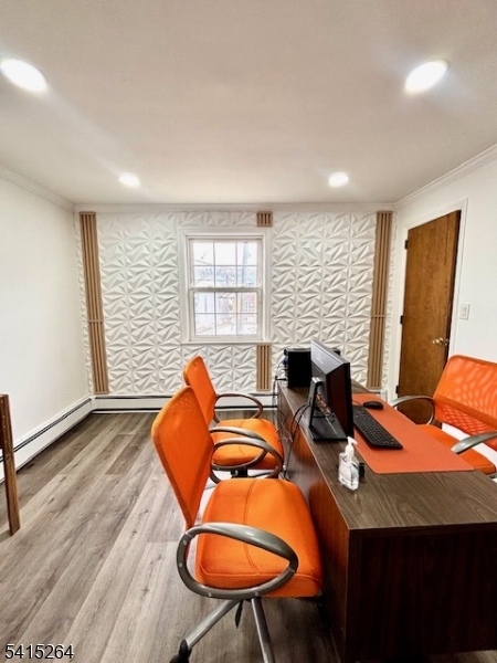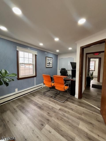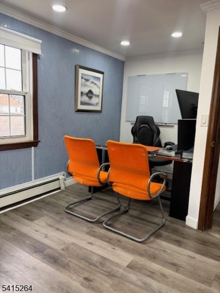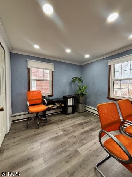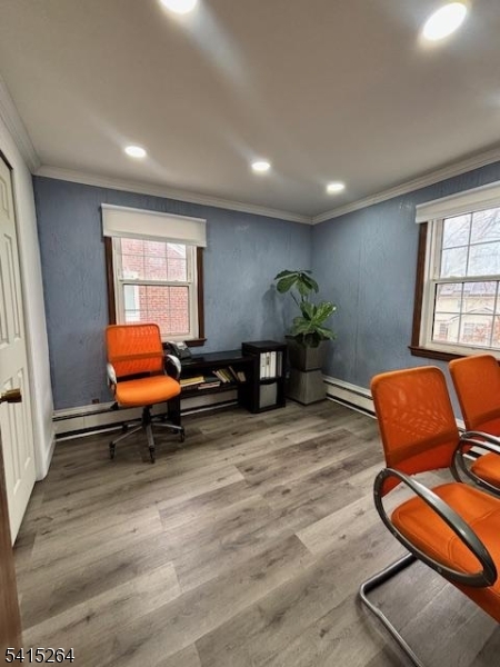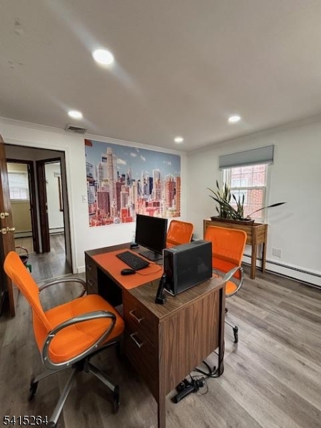 This bright and updated 800 sq. ft. commercial office space offers an excellent opportunity for businesses seeking a professional and welcoming environment. The second-floor unit features three private offices filled with natural light, modern recessed lighting, and a clean, updated interior that creates a comfortable and productive workspace. A modern half bathroom is conveniently located on the same floor, and tenants also benefit from access to a shared conference room and common area, ideal for meetings and collaboration. The space is equipped with central air conditioning and central heating with baseboard heat for year-round comfort. Cooling is controlled separately, while heating is shared. Landlord is open to shared work space providing flexibility for expanding teams or private work areas. The tenant is responsible for electricity, while the landlord covers water and heat, helping simplify monthly expenses. With its bright atmosphere, functional layout, and professional amenities, this office space is well suited for a variety of professional uses.