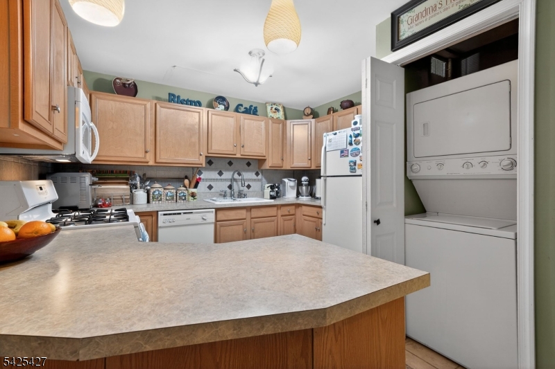 Welcome to this Beautifully Maintained and Move in Ready 2 Bedroom 2 Full Bathroom Condo in Falcon Ridge. Step right into the Open Floor plan with Vaulted Ceilings in the Living Room with Gas Fireplace and Sliders to the Deck, Separate Dining Room, and Kitchen with Peninsula Seating. Down the hallway you will find the spacious Master Bedroom with a Walk in Closet and En-Suite Bathroom. The 2nd bedroom has ample closets with the 2nd bathroom across the hall. Bonus – The washer and dryer are located in the kitchen inside the cabinets for seamless functionality. The beautiful new carpet throughout and a New A/C unit was installed in 2025. Located at the end of the complex and within walking distance to the Clubhouse and Swimming Pool.
