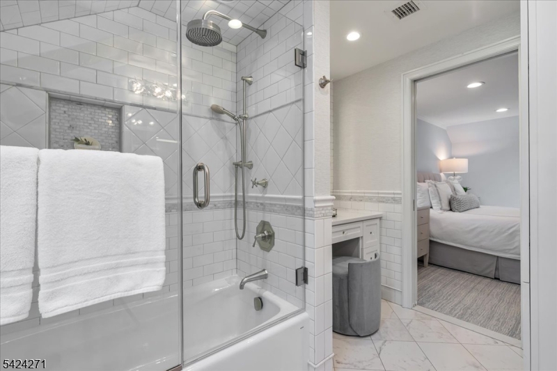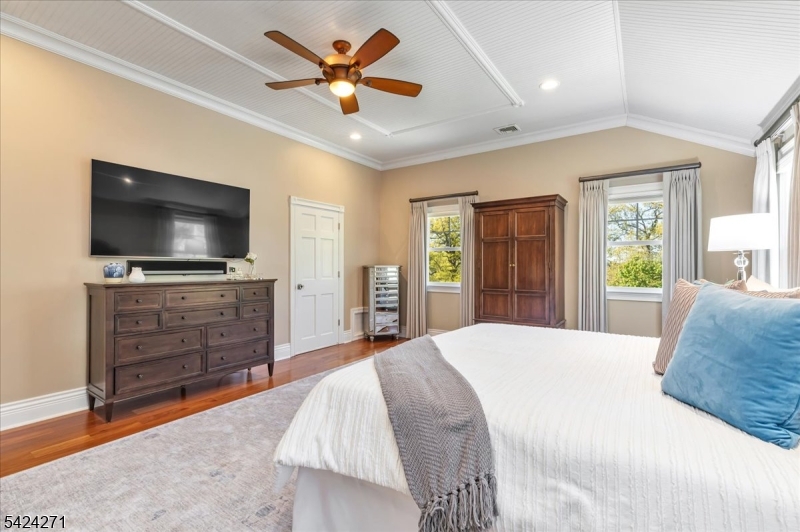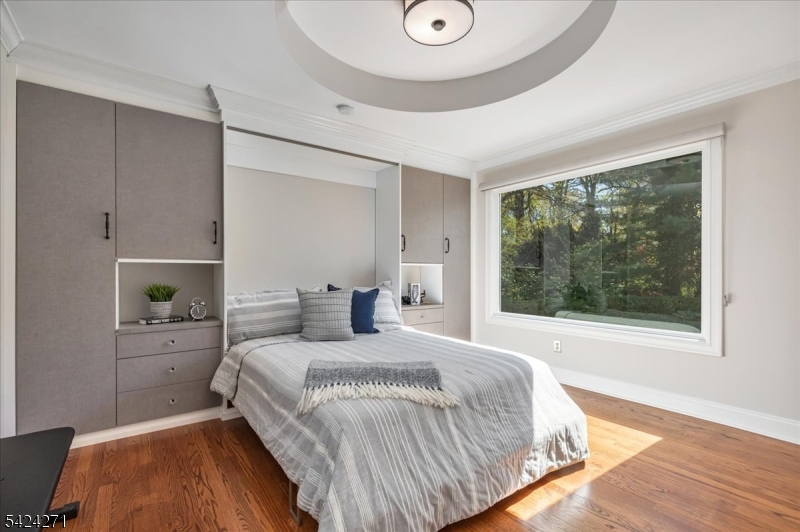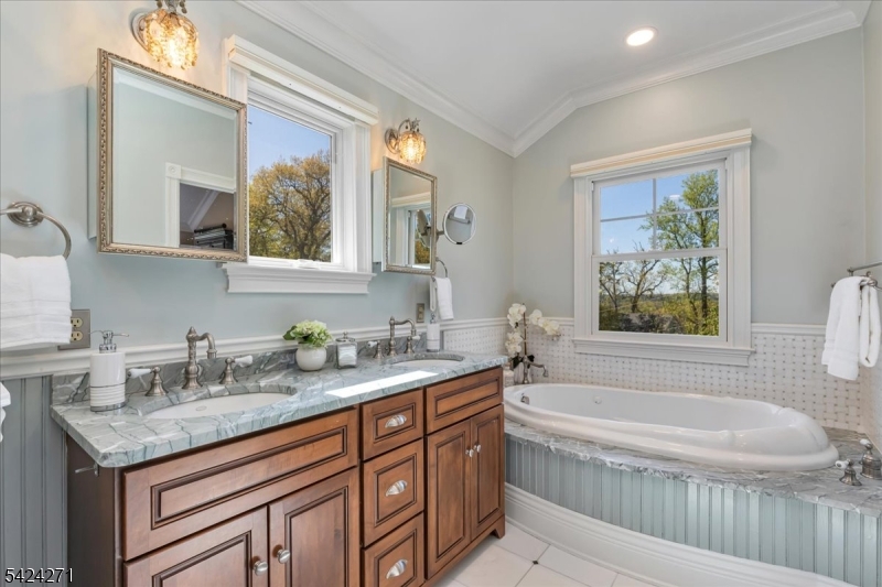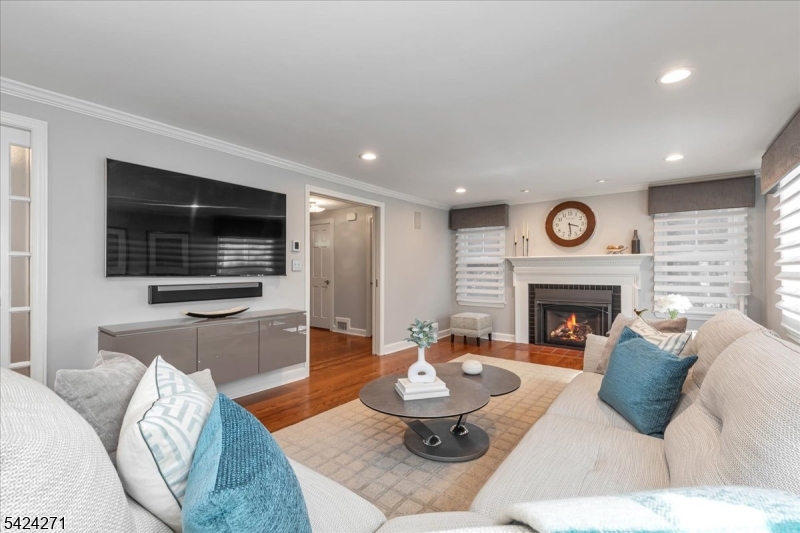 Set in the sought after Tall Oaks section of New Providence, this beautifully updated 4 bed, 3.1 bath Colonial on .29 acres blends comfort, style, and quality updates. Hardwood floors, high end appliances, custom cabinetry, designer lighting, California Closets, and a Generac whole house generator highlight the many upgrades throughout. The light filled kitchen serves as the heart of the home, featuring a large center island with seating, 48 inch Wolf cooktop & double ovens, beverage fridge, and ample cabinetry. A gas fireplace adds warmth, while doors on either side lead to the backyard, creating an ideal setting for entertaining. The generous layout accommodates a large dining table or can be reimagined as an additional living area. The formal dining room features a statement chandelier, while the spacious family room includes a second gas fireplace. A mudroom with custom cabinetry adds everyday convenience, and an updated powder room completes the first floor. Upstairs, the primary suite showcases a beadboard ceiling, walk in closet, and ensuite bath. Three additional bedrooms and two updated full baths complete the level, one bedroom is currently being used as a laundry room/office. The finished basement is a beautiful hangout space featuring a wet bar and beverage fridge. Exterior features include Hardie Plank siding, deck, brick paver driveway, and multiple entertaining areas. A standout feature is the shed with electricity & mini split. Just moments from NYC transit.