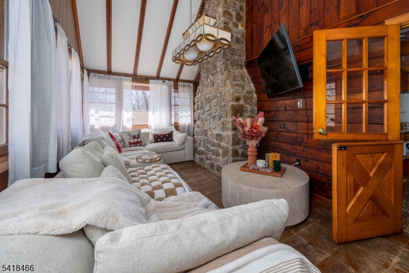 Welcome to your Highland Lakes Escape the kind of place that instantly feels like home the moment you pull up. Tucked away on a prime Corner Lot offering Seasonal Lake Views and just moments from the Community Beach and Clubhouse. This 3-bedroom, 1-bath home showcases Classic Character with original knotty pine woodwork, vaulted ceilings, and a fieldstone Fireplace that anchors the main Dining area. The outdoor area is designed for Enjoyment and Entertaining, featuring a Spacious patio, firepit area, and room for outdoor dining and Relaxation. The unfinished basement offers ample storage, laundry area, and additional utility space. A detached one-car garage provides added convenience and extra storage options. Highland Lakes is a vibrant lake community offering access to 5 Pristine Lakes, 7 beaches for swimming, sailing, boating and with nearby hiking and biking trails. Mountain Creek is a short distance for winter sports and water park, as well as, Nearby golf courses and mountain resorts for year-round enjoyment. Conveniently located just minutes from major highways, commuting is a breeze. You’re also a short drive to historic Warwick, NY, known for its charming shops, restaurants, wineries, and seasonal events. Whether you’re looking for a full-time home or a peaceful escape, this Highland Lakes gem offers comfort, character, and a lifestyle you’ll love!