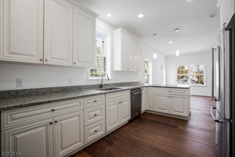 Experience modern living in this all-new construction home just steps from vibrant downtown Rahway. Designed with luxury in mind, the home features high-end finishes throughout, including gleaming engineered “Brazilian chestnut” hardwood floors, stainless steel appliances, granite counters, and a farmhouse sink. Entertain with ease in the formal family room, dining room, and living room complete with a cozy gas fireplace. Offering 3 spacious bedrooms and 2.5 baths, this home balances style with functionality. Additional conveniences include a 1-car garage plus a private driveway parking spot, and an oversized rec room on the ground level perfect for a home gym, office, or additional living space, etc. Perfectly located only 4 minutes from NJ Transit, commuting is effortless while restaurants, shops, and entertainment are right outside your door. A rare opportunity to own a move-in-ready home.