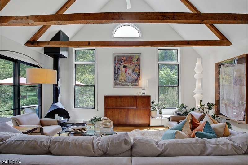 This rare gem of a property is nestled in a striking natural setting in historic hamlet of Mountainville and distinguished by the exceptional attention to aesthetic detail in the extensive renovations undertaken by the current owner. Interior features include open floor plan, plentiful natural light, kitchen with high-end appliances and finishes, solid oak floors, upgraded storage closets and cabinetry, Malm fireplace, and finished and unfinished basement spaces. First floor primary bedroom and multiple spaces suitable for home offices make this home perfect for a range of living arrangements while interior spaces flow to outdoor spaces through oversized glass doors to a large deck linking home to extensive backyard gardens and a striking mountain view. The generously-sized detached garage offers an opportunity for parking/storage/workshop space and features a large, sunny living space above, perfect for use as an artist’s studio, home office, gym, or recreation room. System updates include HVAC (2024/2025), new 30-year roof (2024), deck (2024), glass exterior doors. The backyard’s stunning secluded gardens feature perennial gardens, winding pathways, accent lighting, and firepit area with privacy and space for entertaining, gardening, or simply daydreaming. The home is accessed by way of a private lane in an exceptional location amidst larger estate and farm properties and easy access to Route 78 making it a remarkable opportunity as a full- or part-time residence.