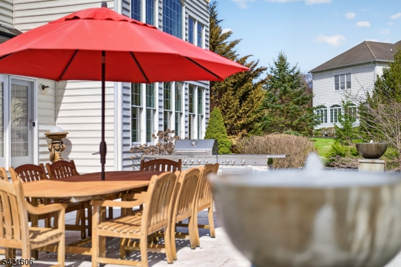 Welcome to Paradise, truly. This Toll Brothers model home in the sought-after Andover Ridge community is a rare retreat where luxury, nature, & lifestyle converge. Just 5 minutes from Rt. 80 and 1 hour from NYC, it offers unmatched convenience with a peaceful, resort-like setting. A dramatic two-story foyer with a grand staircase and designer crystal chandelier sets the tone. Sunlight pours through the great room and conservatory, creating a bright, uplifting feel. The expansive Palladian chef’s kitchen is built for both everyday living & entertaining. Architectural details include skylights, tray and coffered ceilings, a soaring two-story great room, and 9-foot ceilings. Over $200K in upgrades elevate the home throughout. The primary suite is a true showpiece, featuring a gas fireplace sitting area, Bain Ultra air bath, radiant heated floors, and spa-level finishes. All additional bedrooms are private en-suites with walk-in closets and full baths. A dedicated home office adds flexibility. The sunlit conservatory captures some of the best sunset water views in the community. Outside, an expansive travertine patio overlooks 3 acres of serene, open space. The home has been fully refreshed with neutral decor, hardwood floors, and designer appliances. Efficiency is strong for its size with two newer Daikin furnaces, two newer AC units, & Andersen windows. Meticulously maintained, this is a move-in ready, one-of-a-kind retreat where every day feels like a getaway. Video Available.