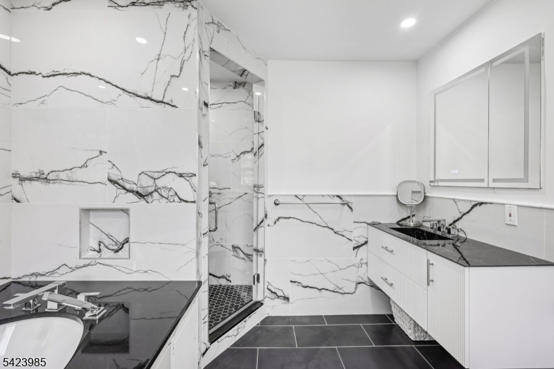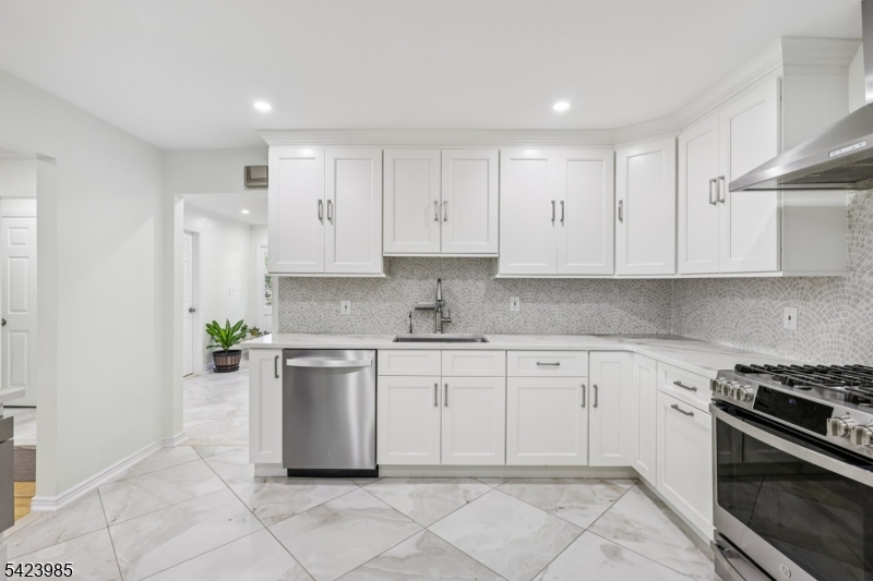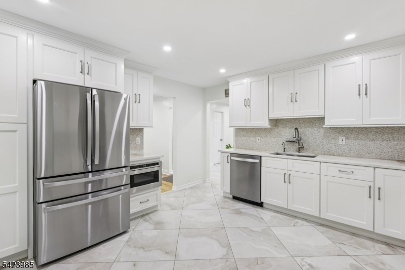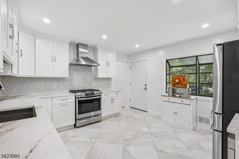 Welcome to this stunning impeccably renovated 4-bedroom, 2.1-bath Split Level home which offers the perfect blend of modern design and timeless comfort. Located on a tree-lined street in a desirable neighborhood, this home features a stunning new kitchen, beautifully updated baths, new tile flooring in the foyer, and refinished hardwood floors throughout. Step into a gorgeous newly tiled entryway that opens to a a spacious family room boasting a full wall of windows. versatile first-floor bedroom or ideal home office, and a sleek powder room. The attached two-car garage adds convenience and storage. The show-stopping kitchen with crisp white cabinetry, stainless steel appliances, and high-end finishes is adjacent to a formal dining room and a sun-drenched living room with expansive windows. Upstairs, retreat to three generously sized bedrooms, including a serene primary suite with spa-like ensuite bath featuring a soaking tub. A second full bath adorned with imported Spanish porcelain tile completes the upper level. The lower level offers a flexible space for a recreation room, gym, office, and laundry. Ample closet space throughout the home ensures storage for every need. Outside, enjoy 1.14 acres of lush, large newly painted deck, private backyard space providing your personal oasis for relaxation, play, or entertaining. This home is the perfect blend of convenience and style. Ideally located near top-rated schools, shopping, dining, and transportation.