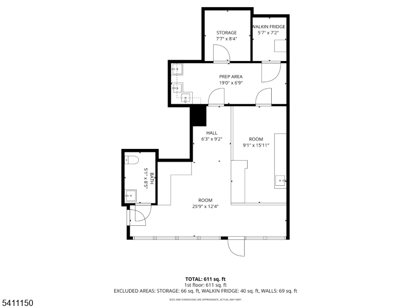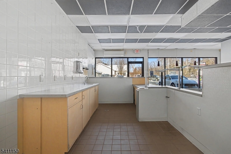 Excellent LOCATION, high exposure, in well known building. This unit has frontal glass windows floor to ceiling, walk in fridge (as is), three sinks for possible kitchenette area, storage room single bath room, tile flooring with drain, custom built in counters and cabinets. Any interested party must do their due diligence. Previous uses have included sandwich shop and taco establishment. No open flame cooking or stove permitted. Water is an extra $50 a month, snow removal is 25% that is charged depending on snowfall amounts, tenant responsible for repairs to $250 and garbage is free of charge. Possible uses, could include office space, or recreational.