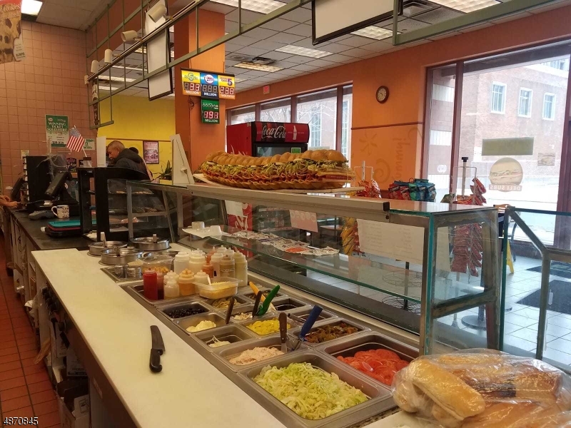 Great Location to make $$. Established 2 food businesses under one roof, Blimpie and free grill food or Pizza. Extra $$$ due to facilities in place for NJ State Lottery terminal. Have many loyal clientele, running business for more than 20 years. Very popular due to clean enviroment and good clean fast food and proximity to private and government office buildings. Store fixtures and equipment include counters, shelvings, cash register, walk-in freezer, 3 Chest freezer, walk in refrigerator, 2 slicers, 5 video camera plus videos surveillance system, and more. Store area is approximately 2.800 SF. Lots of chairs and table. Building has 24/7 security guard. Covered roof garage with 4 spaces. Own your business with a short time. Get your money invested back within 3 years.