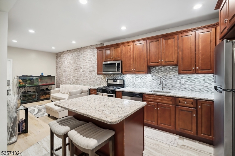 Back on the market! Welcome to this recently updated two-family home offering excellent potential for both owner-occupants and investors. The property has very low taxes, enhancing its appeal as both a primary residence and an investment. Unit 1, located on the first floor, features an open-concept layout with hardwood flooring throughout. The living room flows into an updated kitchen equipped with granite countertops, a large center island, ample cabinet space, and stainless-steel appliances. This unit includes two well-sized bedrooms and a renovated full bathroom. Unit 2 spans the second and third floors. The second floor includes two spacious bedrooms, an updated full bathroom, and an eat-in kitchen with granite countertops, generous cabinet storage, and stainless-steel appliances. The third floor offers a loft-style bedroom and a second updated full bathroom. The property also includes a partial finished basement and a fenced-in backyard. Conveniently located near major highways, public transportation, shopping centers (including Jersey Gardens Mall), Newark Liberty International Airport, schools, and healthcare facilities. Schedule your private showing today.