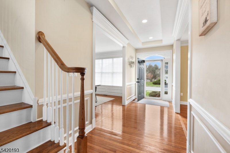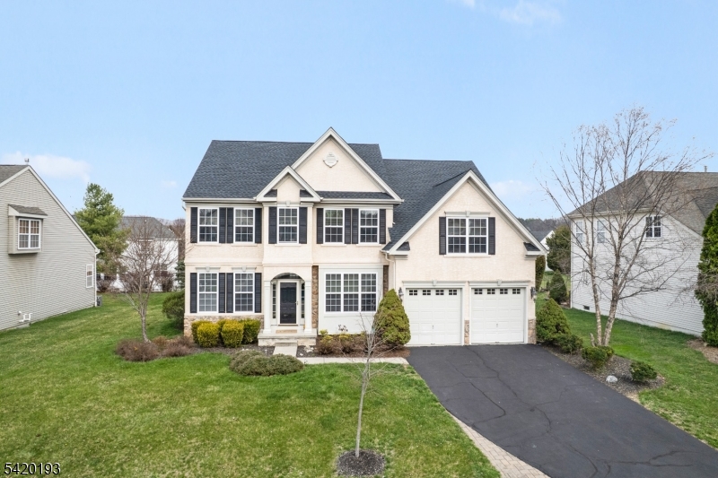 Welcome home to this lovely 5 Bedroom Bainbridge II Model, loc in the Water’s Edge community. It’s near Spruce Run and Round Valley Reservoir. Spacious grand Foyer welcomes you into the home, featuring tray ceilings & lots of natural light. The first floor is appointed w stunning architectural molding, hardwood floors that flow seamlessly throughout the space, and a formal Living rm & a private Study. The Dining rm offers plenty of space for large gatherings. The Great rm is 2 stories w a full wall of windows, a gas fireplace & open to the updated Kitchen. The Kitchen boasts high-end ss appliances, incl 30″ wall ovens, center island, granite countertops & tile backsplash & a large pantry. Separate breakfast area was extended 4′ & features a window seat & a door that leads to an outside Trex deck with steps down to a paver patio for hosting guests. House boasts of complete wired sound system which is perfect for entertaining. Head upstairs to hardwood floors throughout, the primary suite boasts of a walk-in closet & en-suite bath complete with double sink vanity, soaking tub, & separate shower. There are 4 additional bedms & a full hallway bathrm. Fin bas is a truly impressive bonus with over 1500 sf & extra tall ceilings. A perfect Recreation rm 30 x 15 and Game rm 19 x14. New engineered hardwd flrs installed. Located w close proximity to Blue Ribbon schools, shopping, restaurants, & major highways incl RT. 78 & free Park & Ride to NYC bus. Bonus are all public utilities