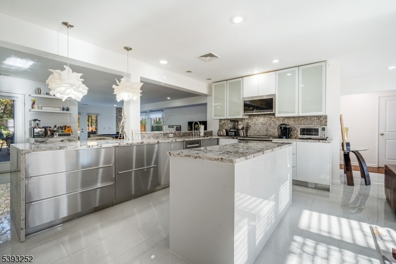 BEST/FINAL THURSDAY OCTOBER 30 2025 @ noon. Experience open-concept living at its finest in this stunning, updated 5-bedroom, 3-full-baths home situated on nearly half an acreKey Features:Property: 5 BRs, 3 Baths, 2-Car Garage on a 0.47-acre corner lot Curb Appeal: Circular driveway with dual entryModern Kit: Waterfall granite countertop, a mix of stainless steel/gloss wood/glass, a spacious island with ample storage, and a dining area. Living Spaces: Fpl, recessed lighting, & flexible LR currently configured as an entertainment area Outdoor Oasis: Three full glass French doors connect the interior to the outdoor huge Trex deck, outdoor kit, & 2nd patio area w/firepit.Interior Highlights:Step inside from the striking glass doors onto beautiful porcelain flooring that extends through the main level. The heart of the home is a chef’s kitchen featuring a spacious island, expansive storage, and a modern DR area. LR offers versatile space for a range of uses, from an entertainment hub with a pool table to a cozy gathering spot.The 1st floor plan boasts 4 generously sized BRs & 2 full baths, offering convenience and single-level living potential for your needs. Luxurious primary suite features massive 16-ft walk-in closet, Private Balcony & Spa-Like en-suite bathroom w/6-ft walk-in shower, a full sunken tub, & double teak sink.Schedule your private viewing today