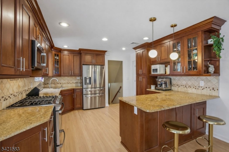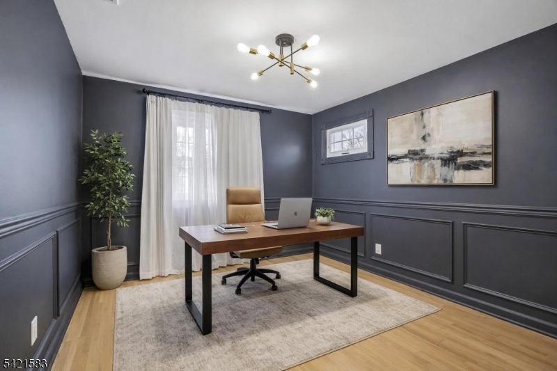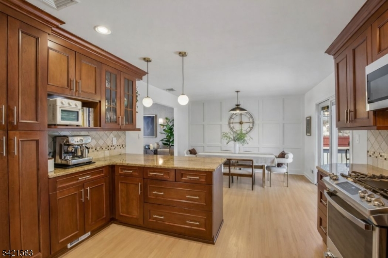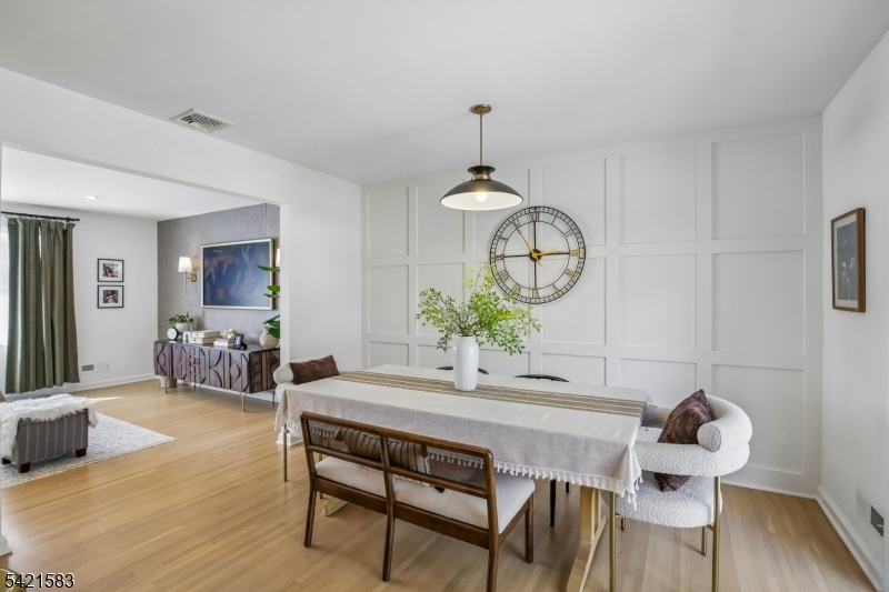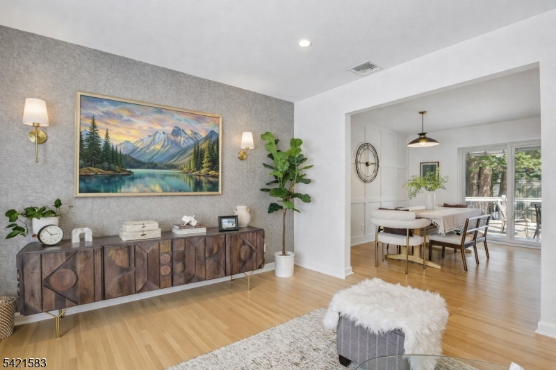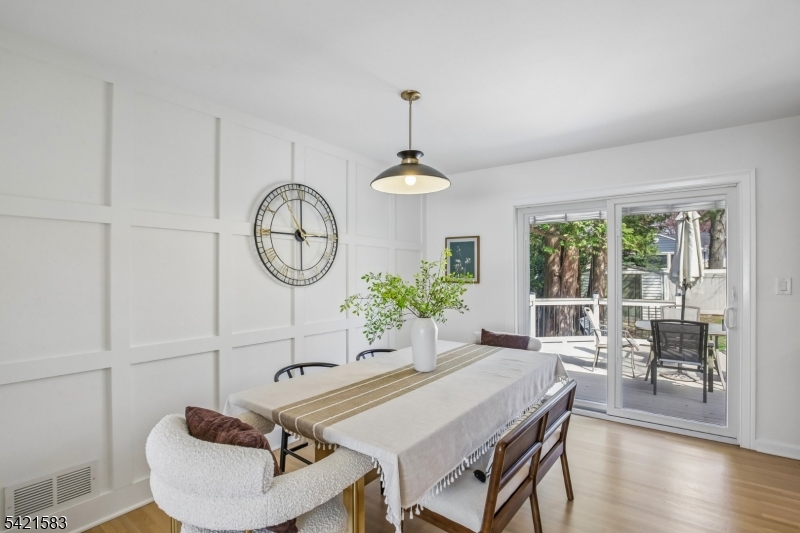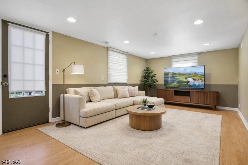 Located in the highly sought-after Garden Oval, this beautiful split-level home offers great curb appeal, modern updates, and a park-like setting. Step inside to find a bright and inviting living room that flows seamlessly into the formal dining room. The dining room leads to a large deck overlooking a fully fenced backyard with firepit and a patio below. Upstairs are three bedrooms including a primary suite with a walk-in closet and bathroom. The ground level includes a family room with access to the two-car garage and backyard, while the basement provides ample storage and laundry. Recent upgrades include smart garage openers, EV charger, security cameras, outdoor electrical outlet, smart smoke & carbon detectors, and a built-in outlet for a Frame TV.Ideally situated near premier shopping, transportation, and major highways enjoy easy access to local grocery stores, shops, and NJ Transit all within 10 minutes. This turnkey Garden Oval residence combines comfort, style, and smart enhancements with spacious living areas and a serene outdoor setting, all in a location that makes commuting and everyday errands effortless.
