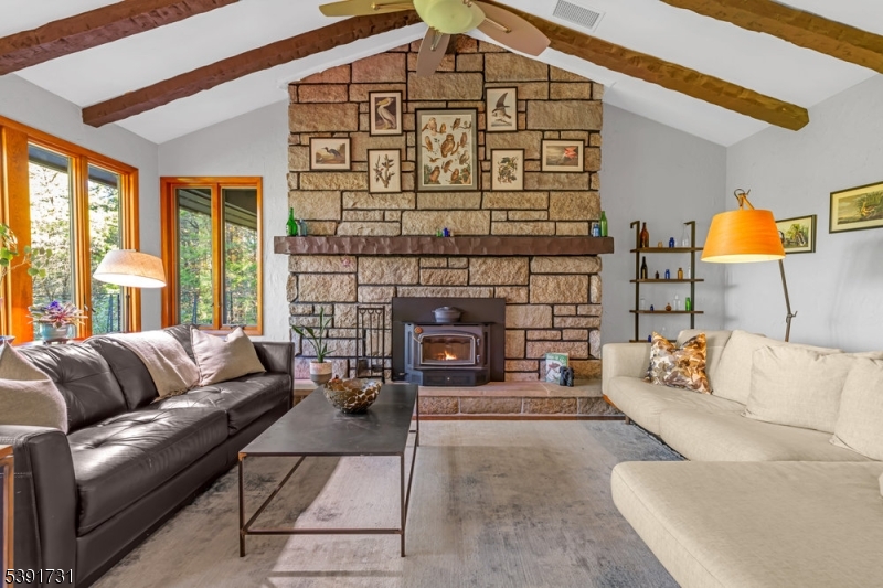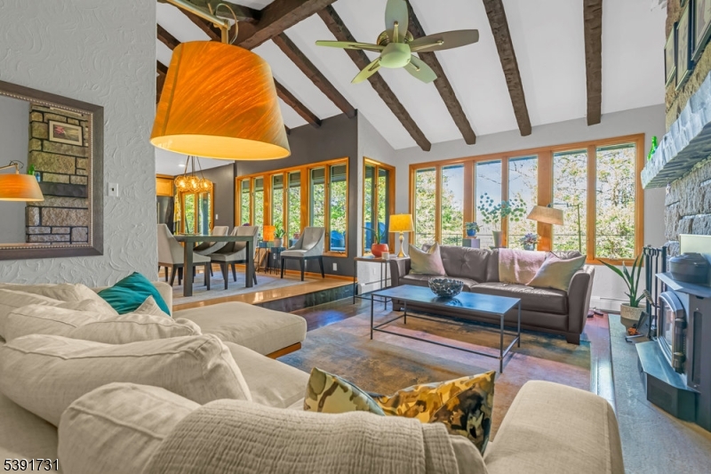 Custom-Built Retreat on 2.2 Private acres. This beautifully maintained home offers luxury and comfort in a serene setting. Features include radiant heated floors, high ceilings, and a spacious open kitchen with a large island. The inviting living room boasts a fireplace, while sliding doors open to a Brazilian Ipe wood deck perfect for entertaining. The entire second floor is a private primary suite with a full bath, walk-in closet and loft area. The finished basement offers a full additional living area, movie theater, and wine cellar. Enjoy peace, privacy, and premium craftsmanship – coming home will feel like a getaway every day. The home currently uses Gigabit fiber internet service.