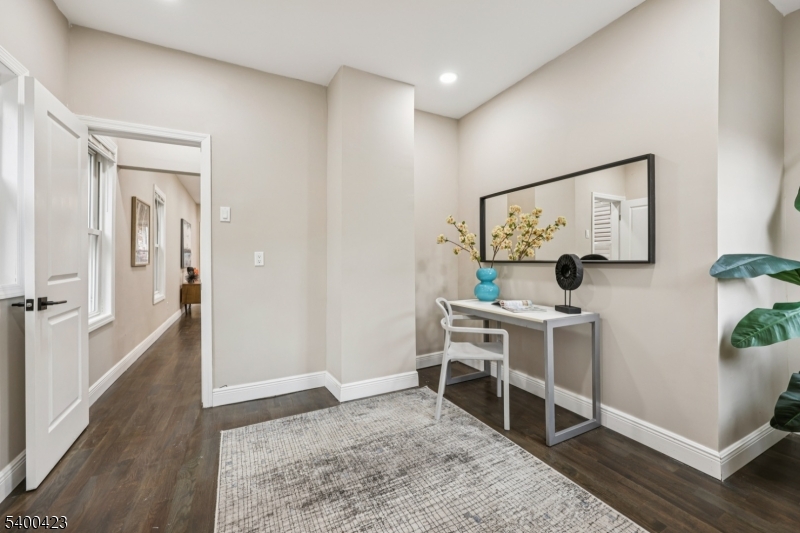 This newly renovated 4-bedroom, 2-bath home offers an open layout filled with natural light. The inviting living room features a bay window that floods the space with sunlight, leading into a modern kitchen with shaker cabinets and white quartz countertops. In addition, the main level includes a full bath and a versatile bedroom or home office for added convenience. Upstairs, you’ll find three comfortable bedrooms with closet space for your storage needs and a full bath accented by sleek black fixtures. The fully finished basement provides additional living space perfect for entertaining, an additional family room, or a media room. Enjoy hardwood floors throughout and a private backyard ideal for relaxing or hosting gatherings. Located in Jersey City’s vibrant West Side neighborhood, this home offers easy access to the West Side Avenue Light Rail, major bus routes, and nearby parks. The area continues to grow in popularity with new shops, caf s, and local restaurants adding to its lively community feel. This residence combines modern living with convenience, making it a perfect place to call home.
