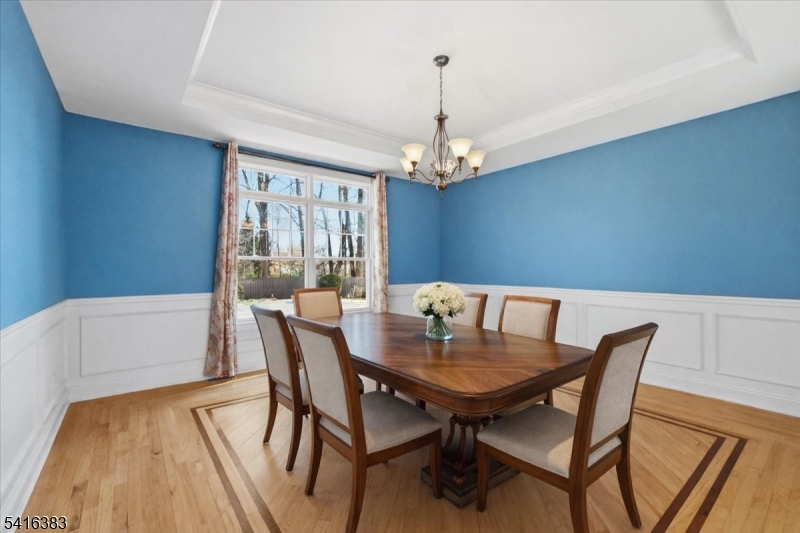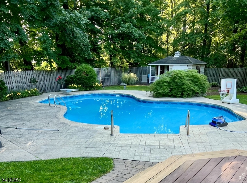 Beautifully maintained 5-bedroom, 3.5-bath Colonial in Sparta, ideally situated at the end of a quiet cul-de-sac in a pristine neighborhood just minutes from town. Filled with natural light, the first floor showcases exceptional architectural details, including oversized windows, hardwood floors, a sunken family room with vaulted ceiling, skylights, and a wood-burning fireplace, as well as a formal living room and dining room with inset hardwood accents and picture molding. A dramatic two-story foyer with dual coat closets creates a welcoming entry. The kitchen features stainless steel appliances, granite countertops, a built-in desk area, and pantry. A private office with French doors is conveniently located near the entrance and adjacent to the powder room. Upstairs, the spacious primary suite offers a sitting area, walk-in closet, vaulted ceiling, and a large en-suite bath with jetted tub and separate shower. Three additional generously sized bedrooms share a full bath and provide ample storage. The fully finished basement adds valuable living space with a recreation area, full wet bar, and a fifth bedroom with full bath ideal for guests. Enjoy outdoor living in the level backyard featuring a beautiful in-ground pool, deck, and patio perfect for summer entertaining. Complete with a large, bright two-car garage and outdoor storage shed, this home offers comfort, space, and a true retreat lifestyle. Vacation where you live! **4-bedroom septic. Square footage per tax records.