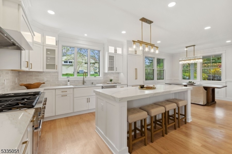 Welcome to this exquisite luxury home situated on a quiet cul de sac but convenient to all this inviting community has to offer. This fully rebuilt home spans 4 finished levels and boasts 6 spacious bedrooms and 7 beautifully designed baths. Every inch of this home has been meticulously designed to offer quality construction, carefully designed high-end finishes and custom wood work-delivering the best of inspired luxury and livability. The 9 ft. ceilings and copious windows make the space feel inviting, bright and airy. There is a first-floor en suite providing ideal flexibility for guests. The heart of the home is the gourmet chef’s kitchen, outfitted with top-of-the-line designer appliances and an oversized island for gatherings. The formal dining room features a stylish butler’s pantry while the thoughtfully designed floor plan creates a seamless flow for life, work and play. Retreat to the primary suite and enjoy a spa-like space with a double shower, dual vanities and his/hers WI closets. The 5 additional bedrooms are generously sized and there are plenty of baths to keep the peace! The finished basement offers perfect flex space including a full bath and a walk out to the back yard which backs to woods and features a patio, gas grill and a level private yard. With top-rated schools-some within a few steps, easy NYC access, and a prime location in one of NJ’s most sought-after communities, this home is a wonderful opportunity to have it all.