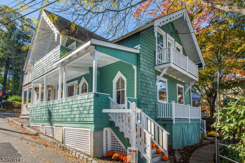 Unlock the charm of a bygone era. Relax and unwind on a rocking chair front porch. Step inside to a beautiful living/dining room boasting newly refinished hardwoods, three beautiful archways and original crystal glass windows, which represent some of the irreplaceable details from the 19th century. An updated eat-in kitchen boasts white cabinetry, updated appliances, large checker style floor and tiled backsplash. Ascend to the second floor, where you’ll find new carpeting throughout and a convenient stackable washer/dryer. Three bedrooms, a wide open hallway, antique wooden and french doors, salvaged from a boarding house in Upstate New York adorn the spacious bedrooms, making this home feel warm and cozy. A recently renovated full bathroom includes beadboard balls, a little skylight, and period-style finishes, providing a touch of vintage elegance. Imagine sipping your morning coffee on one of the two Juliet balconies, soaking in the breathtaking mountain views, the peaks finished with the most beautiful gingerbread trim. Soak in all the beauty that is Mount Tabor with their beautiful walking paths, parks, community activities, and amenities. Just two blocks to NJ Transit direct to NYC and a quick walk to restaurants, coffee shops, and more! The front porch overlooks a picturesque, park-like sitting area and the quaint Mount Tabor library. With basement and attic storage, this Victorian charmer is a delight for those who appreciate character and coziness. Windows are as is