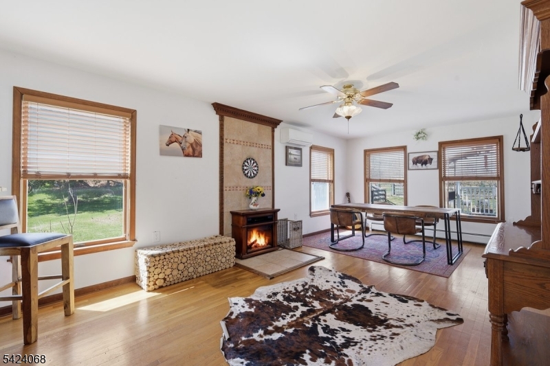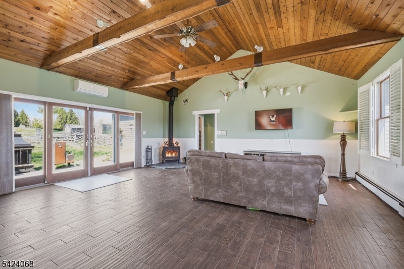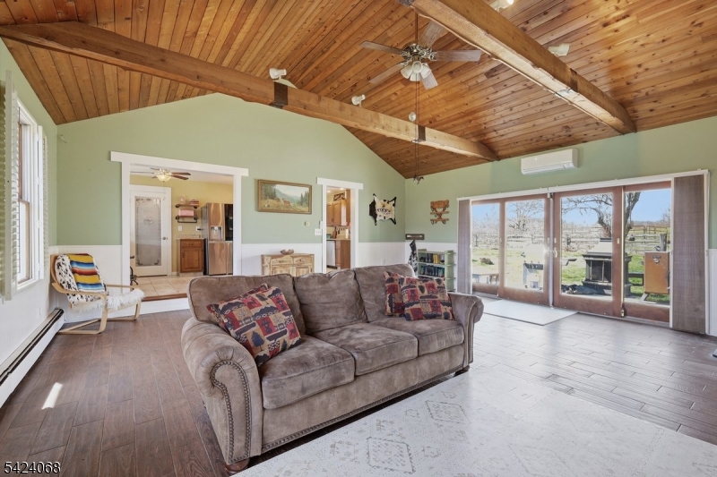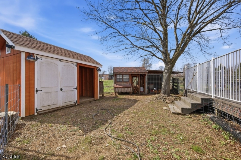 A rare opportunity to own a countryside hobby farm where space, character, and a flexible 4th bedroom/office come together effortlessly. Enjoy open land, scenic views, and a setting that backs to preserved farmland just minutes to Rt 80. The property includes a small barn with water, lean-to, and tack room, fenced areas for animals, a chicken coop, and additional outbuildings for storage. In addition to the home’s 2-car garage, there is a detached 2-car garage with a walk-up loft, offering excellent space for storage, a workshop, or future creative use.The main home offers a spacious great room with a wood stove, vaulted wood ceilings, and exposed beams creating a warm, inviting atmosphere with a comfortable layout for everyday living. A standout feature is the private in-law suite with its own entrance, kitchenette, living space, full bath, and bedroom/office ideal for guests. A place where space, versatility, and a peaceful setting make it easy to feel right at home.