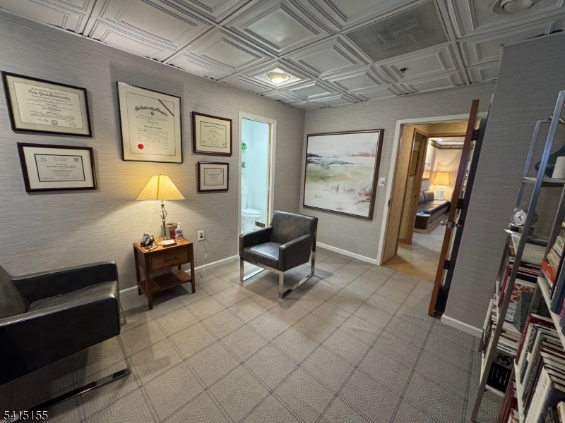 Rare turn-Key Medical Office in Livingston. This beautifully maintained space features three private exam/consultation rooms plus a spacious conference room or library, complete with built-in bookshelves that create a warm, professional atmosphere ideal for meetings, research, or quiet work.The welcoming reception area and front desk flow seamlessly into a bright waiting room with custom built-in benches, offering both comfort and style for patients. Two bathrooms provide convenience for staff and visitors.Additional highlights include basement storage and two reserved covered physician parking spaces a rare and valuable amenity.Perfectly located just minutes from Saint Barnabas Medical Center and Summit Medical Urgent Care, with easy access to major highways and the Short Hills and Millburn train stations, making commuting simple for both staff and patients.A rare opportunity to establish or expand your practice in a prime, highly accessible medical corridor.