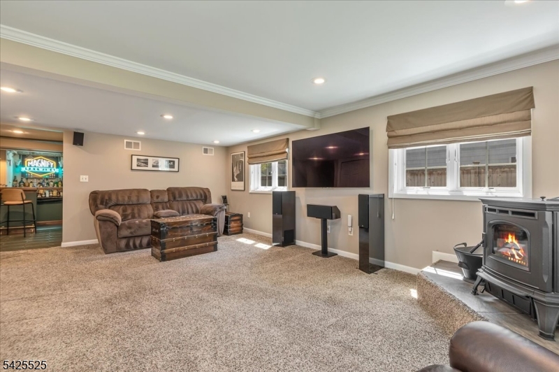 Amazing Location – Expanded custom split home offers 5 levels of living space designed for flexibility and everyday comfort! With 3 thoughtful additions, it features 4 bedrooms and 2.5 updated baths. The primary suite features high ceiling, large bath, double closets and a laundry room. The massive kitchen opens directly to the backyard entertaining area through double French doors, creating seamless indoor-outdoor flow. Expansive family room features a newer pellet stove fireplace with a hidden speakeasy-style bar on the ground level – a truly unique feature for entertaining. The finished basement adds even more versatile space. BRAND NEW ROOF and ALL NEWER SYSTEMS! Multi-zone HVAC (2-unit system) for efficient comfort throughout. Pristine and move-in ready! Level lot of approximately .26 acres boasts an incredible outdoor setting. The backyard is a true retreat with a paver patio, koi pond, raised garden beds, and a charming storage shed complete with a front porch & window boxes perfect spot for relaxing. Conveniently located near top-rated schools, local parks, and just moments to downtown Cranford for shops, dining, and NYC transportation. This home is not located in the flood zone.