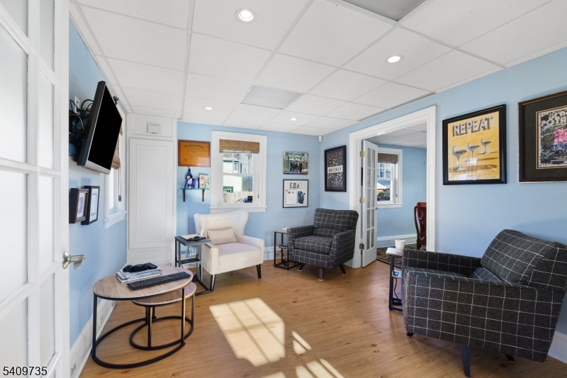 Charming and modernized 2-story free-standing building in the C-1 Zone with excellent visibility and walkable access to Historic Main Street, public parking, restaurants, shops, museums, and the iconic Red Mill. Easy access to Routes 78, 22, 173, and 513. Currently used as office space; flexible potential uses. First floor offers two bright rooms, a kitchen, and access to a covered front porch, back porch and compact yard. Access to basement with sump-pump, raised HVAC from kitchen. Second floor includes a powder room and three private rooms. List of upgrades and improvements available.