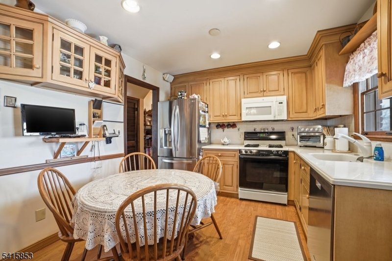 Welcome to this beautifully maintained and versatile home located on a quiet residential street in desirable Oakland. This home offers the rare opportunity of a legal two-family property currently being enjoyed as a spacious single-family home, providing flexibility for a variety of living arrangements or potential rental income. This move-in ready home features 5 bedrooms and 2.5 bathrooms with gleaming hardwood floors throughout and an ideal layout for comfortable everyday living. The main level offers 3 generous bedrooms, a full bathroom, and a beautifully maintained kitchen & dining room with direct access to the deck perfect for outdoor dining and entertaining. The second floor functions as its own private living space with two bedrooms, a full bathroom, a kitchen, and a bright living room, offering excellent flexibility for guests, private living space, or potential rental use.. The finished walk-out basement adds even more functional space and includes a half bath, laundry area, and direct access to the backyard. Outside, enjoy a long private driveway, a 2-car attached garage, and a rare two-story detached garage in the rear perfect for car enthusiasts, hobbyists, or storage. The backyard is an entertainer’s dream featuring a fully fenced-in in-ground pool, offering privacy and space to relax all summer long. Combining flexibility, space, and excellent condition, this unique property offers endless possibilities in one of Bergen County’s most sought-after communities.