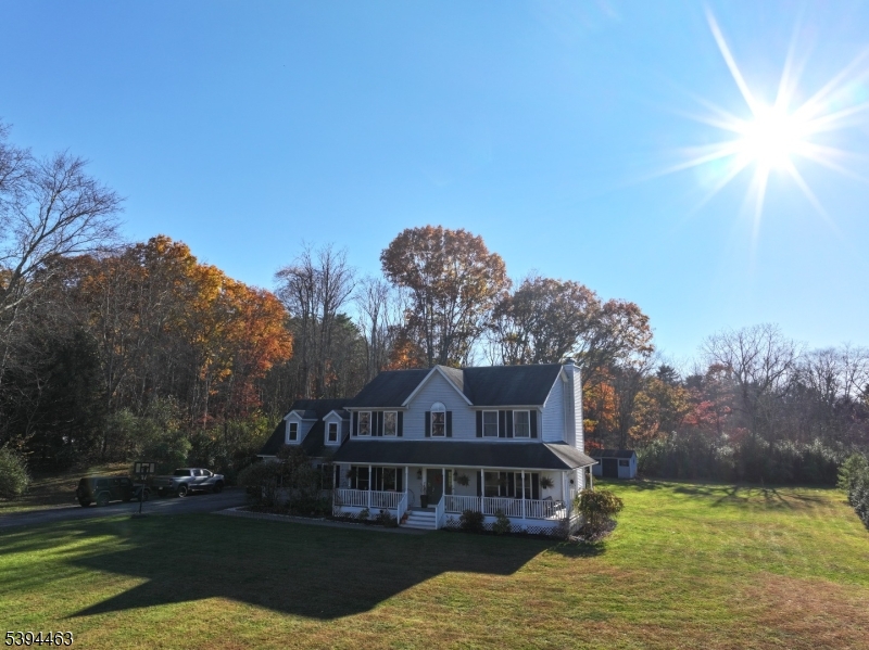 Welcome to this inviting 4-bed, 2.5-bath center hall colonial set on approximately 1.4 acres at the end of a quiet cul-de-sac. Classic design offers a perfect balance of charm & functionality, beginning w/ lemonade front porch that wraps gently around the side of the home ? an ideal spot to relax & enjoy the peaceful setting. Inside, the spacious family room features hardwood floors & beautiful stone-surround wood-burning fireplace, creating a cozy gathering space. French doors separate family & formal living rooms, while the formal dining room ? also w/ hardwood floors ? is perfect for entertaining. Kitchen features stylish concrete countertops & flows into a sunny breakfast room w/ sliders leading to a large deck & paver patio complete w/ a pergola, extending your living space outdoors. Upstairs, primary suite offers a walk-in closet & ensuite bath w soaking tub for unwinding at the end of the day. A large 24×15 bonus media room provides endless possibilities ? home theater, playroom, gym, or office. An upstairs closet is perfect for a potential laundry area for added convenience. Backyard is a true retreat, featuring a charming white picket-fenced garden area & a wooded path that opens to a cozy firepit area ? perfect for gatherings under the stars. Additional highlights include a 2-car garage and a full unfinished basement offering ample storage or future expansion potential. A rare blend of comfort, character, and privacy ? all within a beautiful cul-de-sac setting.