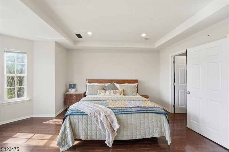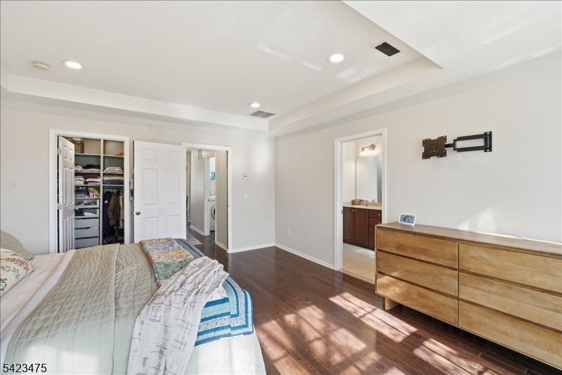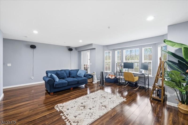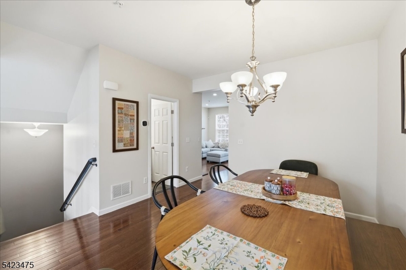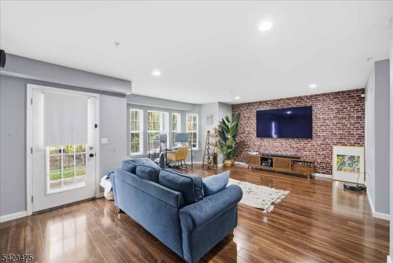Welcome to this beautifully maintained brownstone-style townhome built in 2008 by Centex Builders, offering approx. 2,369 sq ft across three levels. This spacious home features 3 bedrooms, 2 full baths, and 2 half baths with hardwood floors throughout. The main level offers a bright living and dining area with floor to ceiling window and tray ceiling. In addition, there is a powder room, and an open family room with a gas fireplace leading to a gourmet kitchen with center island, granite countertops, 42 cabinets, stainless steel appliances, separate pantry and access to a private deck. Upstairs features a large primary suite with tray ceiling, walk-in closet with custom organizers, and en-suite bath with jetted tub, separate shower, and double vanity. Two additional bedrooms, full bath, and laundry room complete the level. Ground floor includes a versatile recreation room/office with a half bath and access to another private patio. Enjoy unobstructed meadow views, an oversized garage, and double driveway. Dual-zone HVAC with smart home with Nest thermostats and primary bedroom lighting. Low taxes & HOA. Convenient to NYC transportation & free shuttle to train station, schools, parks, shopping, and dining.
