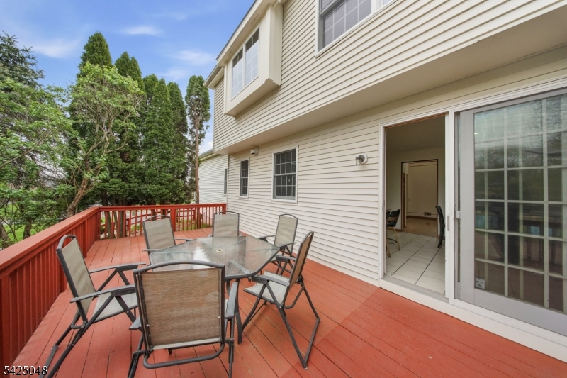 Fabulous bright and spacious Colonial single family in a quiet neighborhood and excellent school district with 1.15 acres land. Four bedrooms plus an office which could be the 5th bedroom on 1st floor, 2.5 bath, 2 car garage, full basement. Center hall, two story entrance foyer. Large kitchen with breakfast area, granite counter tops, stainless steel appliances, vent out exhaust fan. Family room with gas fireplace and French door access to the private big deck. Hardwood floor throughout. Master suite with huge walk-in closets with additional storage space which could be used as a quite study room. Master bathroom with double sinks, bathtub and stall shower. Finished basement has plenty of open space and serves as a recreation room. Beautiful front wrap around porch. Move in this beautiful home and enjoy the large front and backyard this summer!