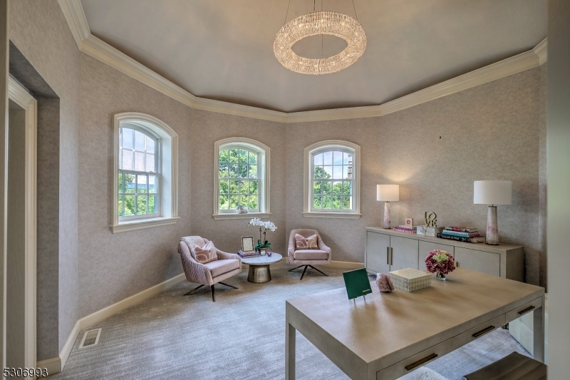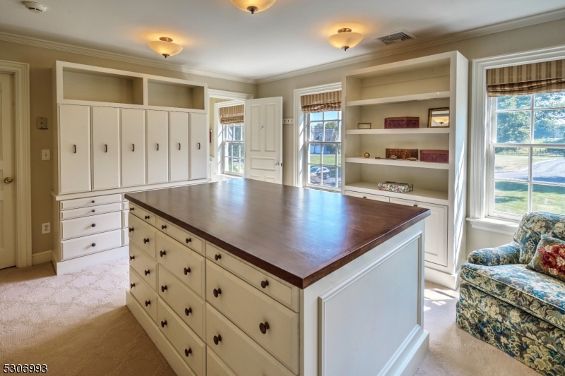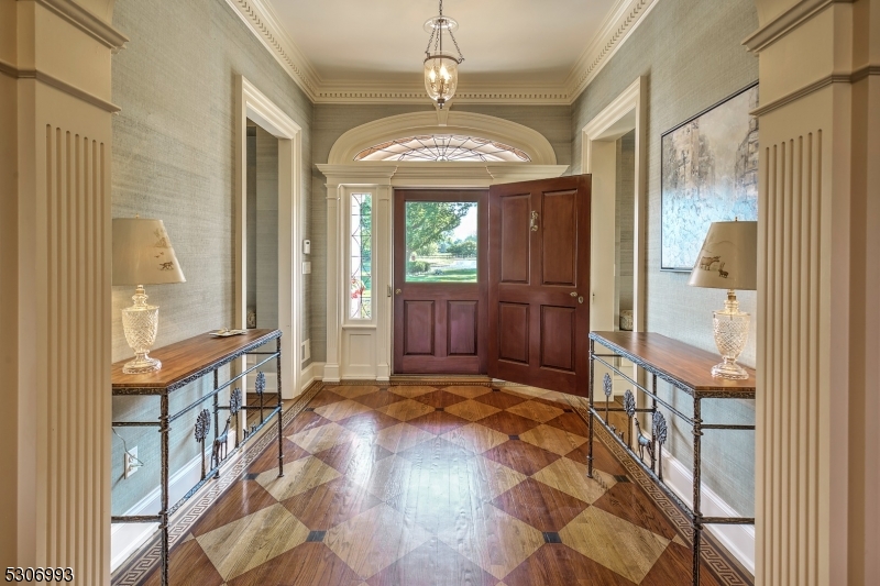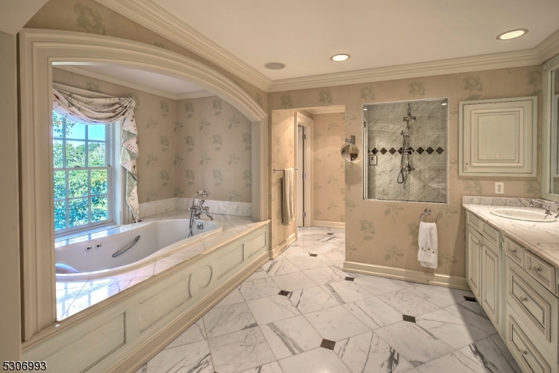 Set on 44 open, rolling acres in Bedminster Hunt Country, an exceptional gated Colonial Revival estate with equestrian facilities is set along one of the township’s most desirable lanes. Featured in NJ Design magazine, the sophisticated interiors create a relaxed ambiance characterized by rich colors and remarkable millwork. The expansive seven bedroom, eight full bath and two half-bath main residence is enriched by a three-stall horse barn featuring an attached three-car garage with a two-bedroom apartment above and an adjacent bonus room with kitchenette and full bath. Outside the main house, a generous patio and dual-covered side porches overlook sublime views of the acreage, while a pool tucked beyond a charming arbor and white picket fencing is lushly landscaped. Set far back from the road at the end of the long drive, this gracious property provides absolute privacy.