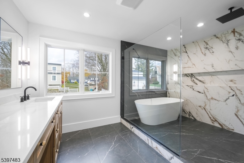 Welcome to 48 Grant Ave, located in the sought-after town of East Hanover. This exceptional new-construction home offers 4000 sq ft of brand-new luxury living space. Designed with elegance and comfort, the home features 4 bedrooms and 5.5 bathrooms, all finished with upscale materials and attention to detail. The 1st floor showcases a spacious gourmet kitchen with high-end stainless steel appliances, quartz countertops, an oversized center island, and abundant custom cabinetry. This beautiful space opens seamlessly to the dining and living areas, creating an ideal setting for both everyday living and sophisticated entertaining. A private office, stylish powder room, and a mud room complete the first floor.The second level includes four generously sized ensuite bedrooms, each offering its own full private bathroom. The primary suite serves as a luxurious retreat, featuring two walk-in closets and a spa-like bathroom with dual sinks, a large stand-up shower, soaking tub, heated floors, and elegant marble walls. The fully finished basement provides high ceilings, a full bathroom, and flexible open space perfect for a recreation room, gym, or guest accommodations .Behind the wall in the basement leads to a theater room. The exterior includes a 2-car garage and a large driveway providing ample parking for multiple vehicles. The fenced-in backyard features a beautiful combination of pavers and grass, offering the perfect outdoor environment for entertaining, play, or relaxation.