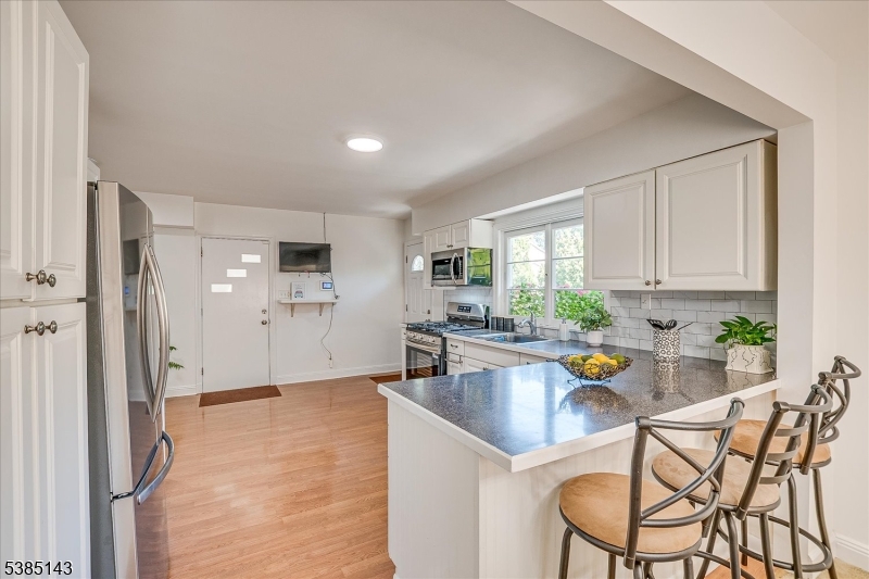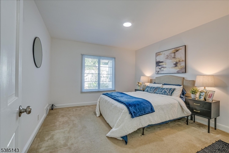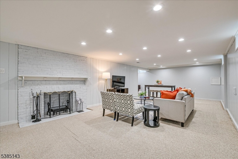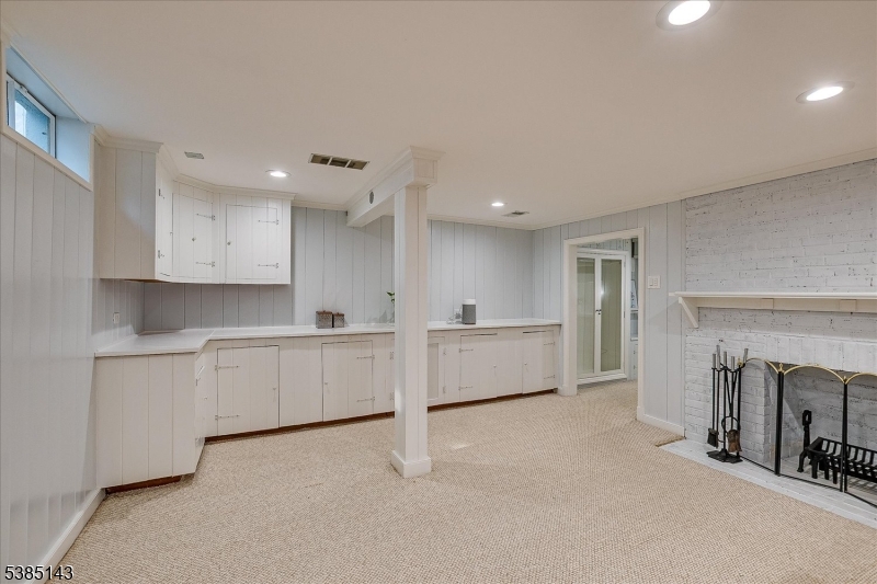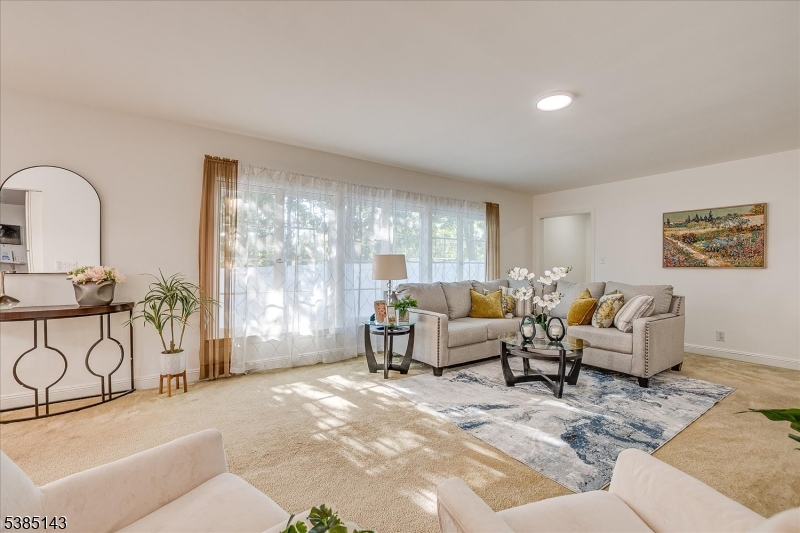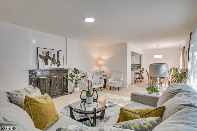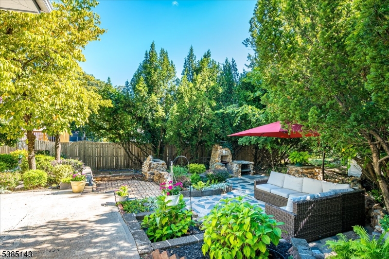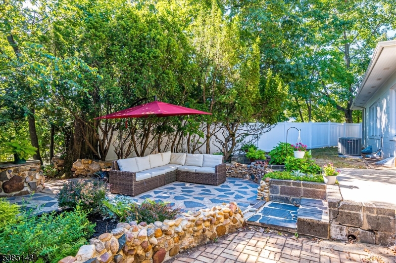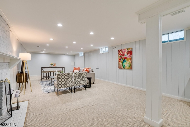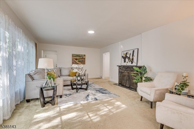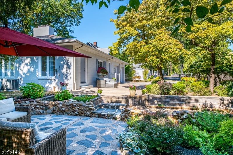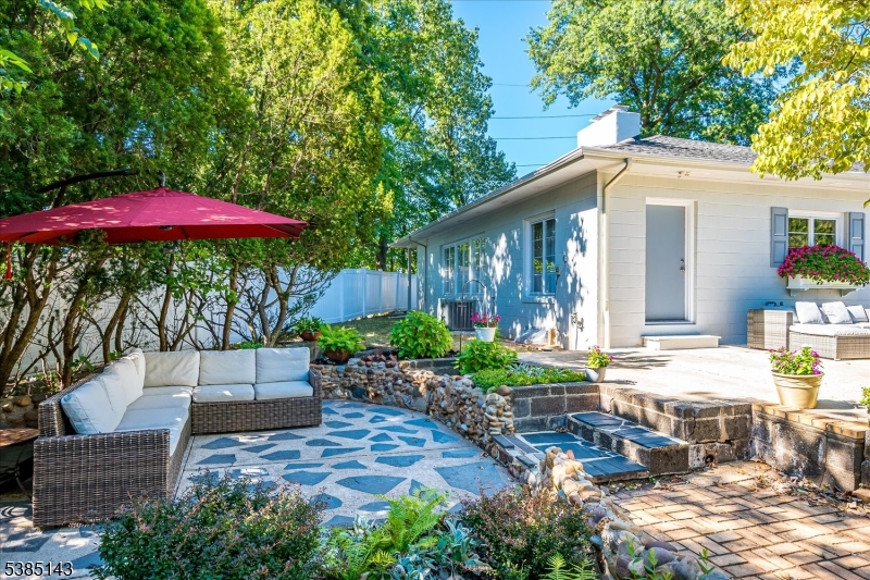 This fully renovated Mid-Century Modern ranch is a true hidden gem, tucked away off a quiet cul-de-sac. A European-inspired courtyard w colorful flowers, lush plantings, & a sunken stone patio an inviting outdoor retreat. An open floor plan & neutral palette create a bright, airy atmosphere, enhanced by oversized windows throughout. The updated kitchen showcases paneled cabinetry, a subway tile backsplash, breakfast bar, pantry, & newer SS appliances. It opens to the dining area, making entertaining effortless. The spacious living room features triple windows, a marble-surround fireplace, and coat closet, great for entertaining. The serene primary suite feels like a retreat w dual closets & abundant natural light. 2 additional bedrooms offer comfort & flexibility. The main bath adds Art Deco charm w black & white tile, a linen closet, & a new glass shower door. Stairs leads to the attic, potential for future expansion. The fully fin basement has a welcoming family room featuring a FP, built-in storage, cedar closet, recessed lighting, a private office & a full bath. An oversized bonus room converted from the 2 car garage offers additional flexible space & laundry area. It can easily be converted back to a full or partial garage. Freshly painted throughout, this home is move-in ready & has been meticulously cared for. Additional updates include a newer furnace & central AC, roof approximately 8″10 years old. Just over 1 mi to Train, close to St. Peters Hosp., RWJ & Rutgers.