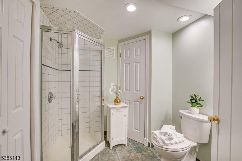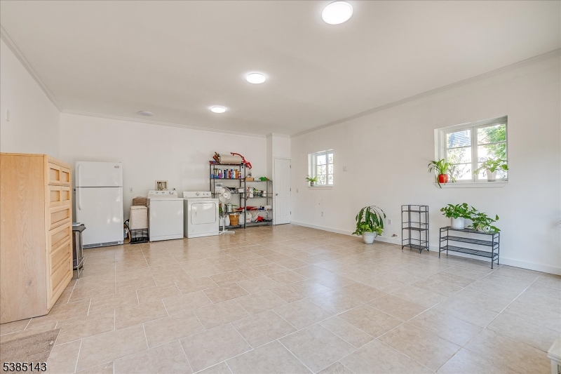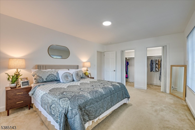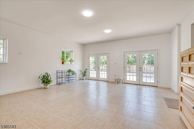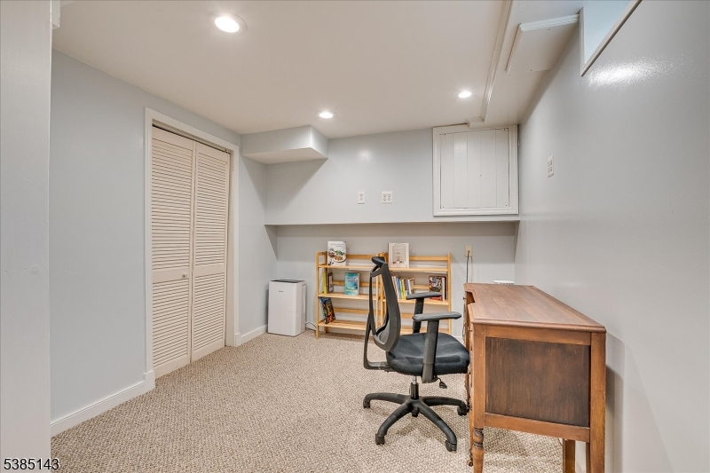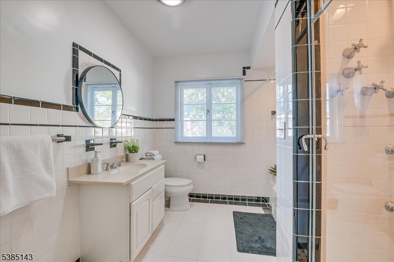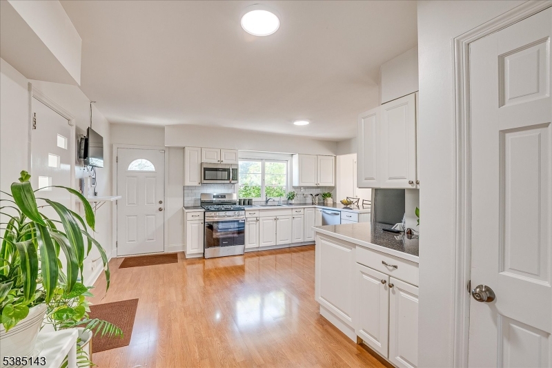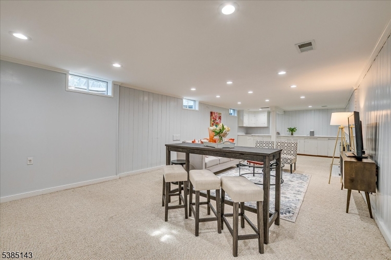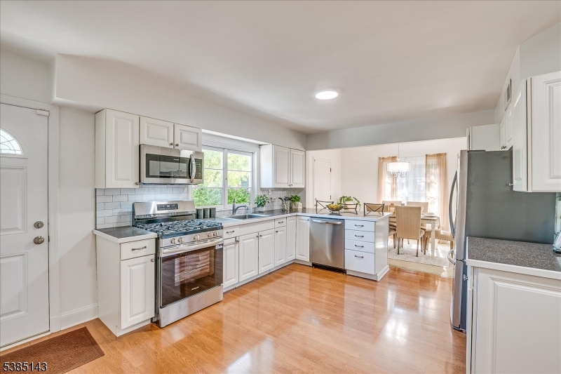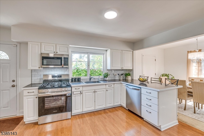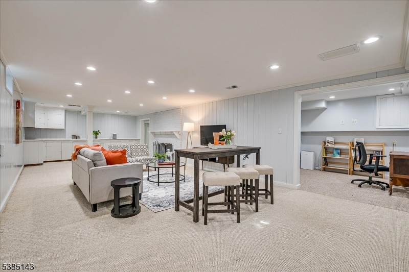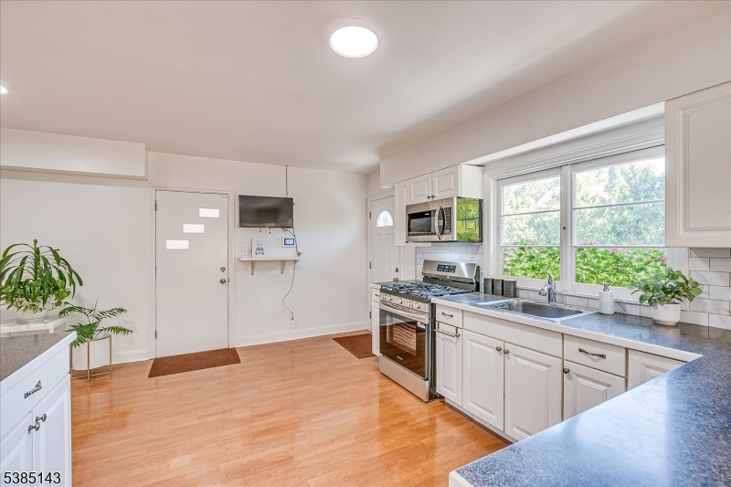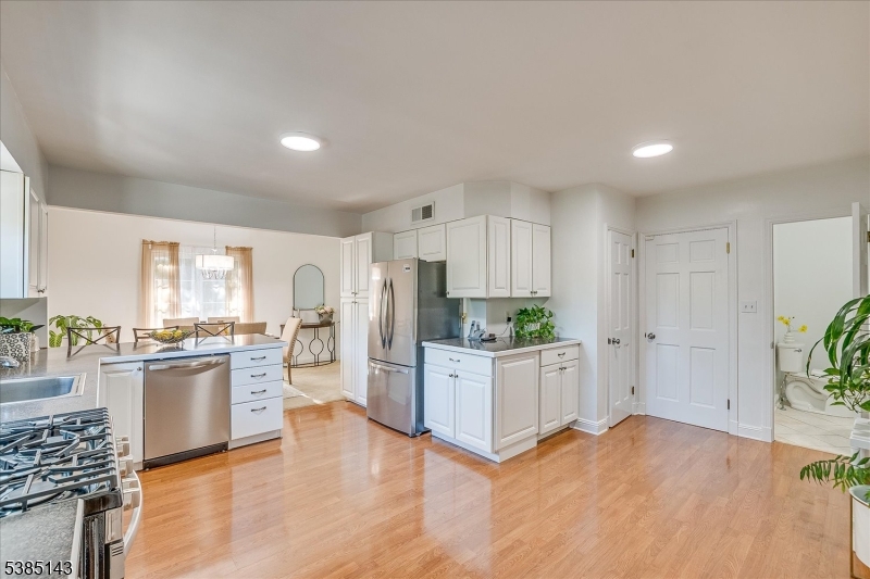 This fully renovated Mid-Century Modern ranch is a true hidden gem, tucked away off a quiet cul-de-sac. A European-inspired courtyard w colorful flowers, lush plantings, & a sunken stone patio an inviting outdoor retreat. An open floor plan & neutral palette create a bright, airy atmosphere, enhanced by oversized windows throughout. The updated kitchen showcases paneled cabinetry, a subway tile backsplash, breakfast bar, pantry, & newer SS appliances. It opens to the dining area, making entertaining effortless. The spacious living room features triple windows, a marble-surround fireplace, and coat closet, great for entertaining. The serene primary suite feels like a retreat w dual closets & abundant natural light. 2 additional bedrooms offer comfort & flexibility. The main bath adds Art Deco charm w black & white tile, a linen closet, & a new glass shower door. Stairs leads to the attic, potential for future expansion. The fully fin basement has a welcoming family room featuring a FP, built-in storage, cedar closet, recessed lighting, a private office & a full bath. An oversized bonus room converted from the 2 car garage offers additional flexible space & laundry area. It can easily be converted back to a full or partial garage. Freshly painted throughout, this home is move-in ready & has been meticulously cared for. Additional updates include a newer furnace & central AC, roof approximately 8″10 years old. Just over 1 mi to Train, close to St. Peters Hosp., RWJ & Rutgers.