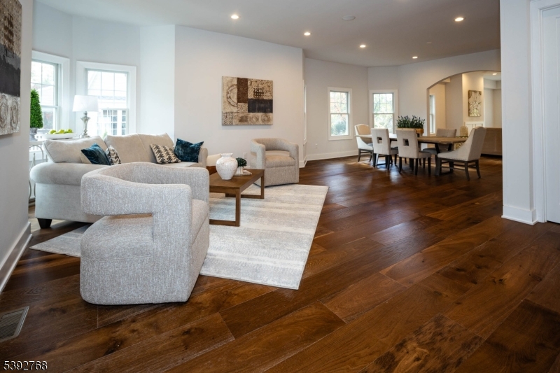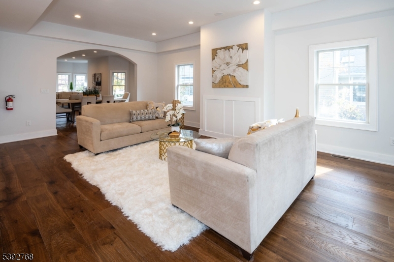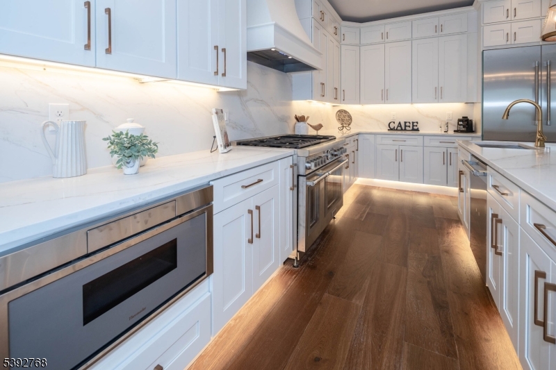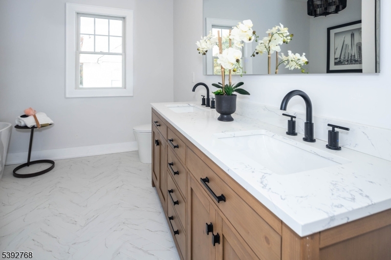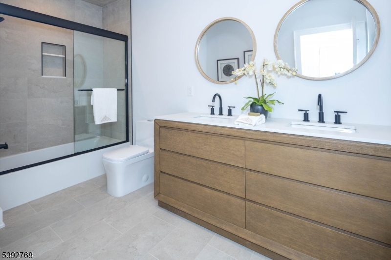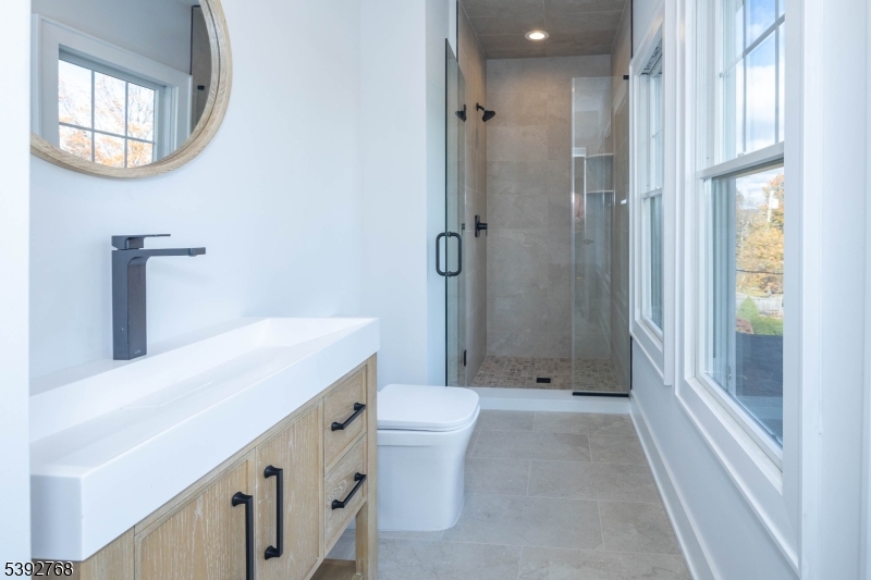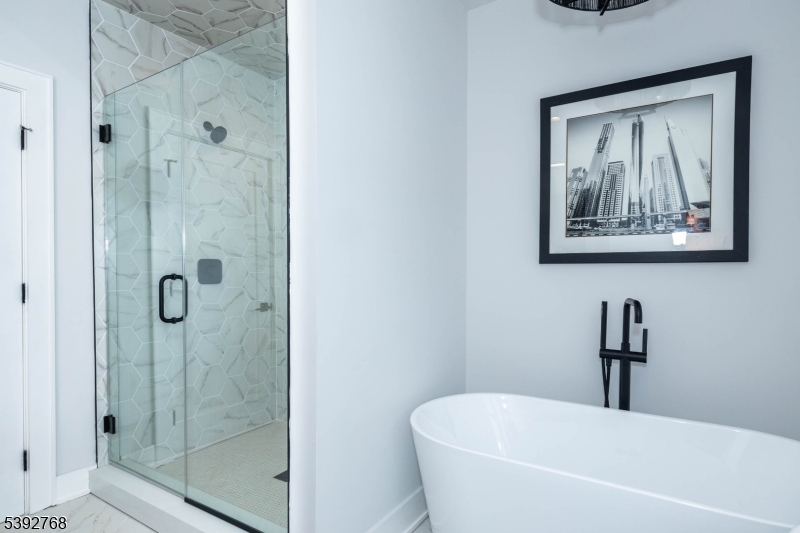 This magnificent and stately home has been transformed with a 2-story addition and total renovation, and sits less than half a mile from the Westfield NJ Transit Station. The living space includes a chef’s kitchen with a Thermador appliance package with a 48″ range and 48″ refrigerator. and 11′ long oversized island. The kitchen flows into a sun-drenched family room, where the centerpiece will be a gas fireplace (to be installed/backordered). The adjoining open-concept dining room and living room provide endless possibilities for your interior design. Completing the first floor are a guest suite, with full bath and walk-in closet, a home office, powder room, as well as a walk-in pantry with sink and a beverage center. On the second floor, the primary bedroom features a full bath with a custom shower and a soaking tub, as well as a massive walk-in closet (seller will provide an allowance for customization). Also on the second level, you’ll find a junior suite with a full bath, as well as 2 more bedrooms with a shared hall bath, and a laundry room. The finished third level offers another bedroom or recreation room, as well as another full bath. New 2-zone heating and air conditioning for your comfort, and an new tankless/high efficiency water heater. Outside you’ll find new CertainTeed Cedar Impressions siding, a new roof, new Andersen windows. The new 16×16 paver patio overlooking the deep back yard is perfect for outdoor entertaining. Bottom portion of driveway is shared.