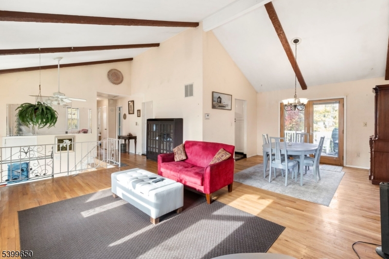 Welcome to this spacious bi-level home offering incredible potential, flexible living space, and a generous property in a desirable neighborhood. An airy living room with large windows and an open layout fills the home with natural light. The main level features a bright living and dining area with exposed beams, hardwood floors, and access to a large elevated deck ideal for entertaining or enjoying peaceful views of the expansive backyard. The kitchen offers ample cabinetry, updated stainless steel appliances, and a functional layout ready for your personal touch. Three well-proportioned bedrooms on the upper level include a spacious primary with double closets. Two full bathrooms?one on each level?feature oversized showers and generous storage. The lower level adds versatility with additional rooms perfect for a home office, guest suite, hobby space, or recreation room. A large den/dining area with mirrored storage, a second kitchen/utility space, and walk-out access to the patio make this floor ideal for multi-generational living or extended guests. Outside, the expansive yard offers endless possibilities for gardening, play, a future pool, or outdoor lounging. The elevated deck and covered patio provide multiple spaces to enjoy the outdoors year-round. A fantastic opportunity for buyers seeking space, value, and the chance to customize a home to their taste.