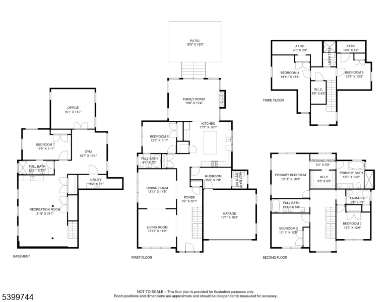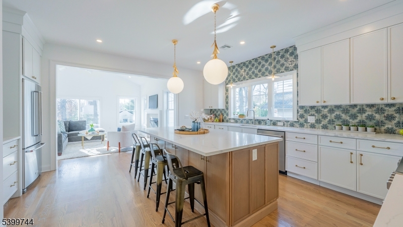 Experience the best of modern living in this exceptional nearly 5,000 sq ft. newly built home, stylishly designed for comfort & effortless living & ideally located only 0.7m to downtown Maplewood Village. Impeccable design & high-quality craftsmanship combine in this thoughtfully planned custom Colonial featuring 9′ ceilings, oak flooring, curated lighting, detailed millwork & loads of windows offering incredible natural light. Step through the front-to-back center Foyer & into open & sun-drenched rooms that invite gathering & relaxation. The elegant Living & Dining Rms flow into the dream Kitchen, anchored by a spacious center island & top-of-the-line appliances created for the fussiest of chefs! Adjacent casual Dining area & Family Rm comfortably welcomes all w/ its vaulted ceiling, gas Fireplace & sliding doors to the rear patio & fully fenced yard, the perfect outdoor entertaining venue. 1st Fl. en-suite BR, customized Mudroom w/ access to 2-car Garage & Powder Rm completes this level. Upstairs, the Primary suite becomes your personal sanctuary, featuring a serene Dressing Rm, spa-like Bath, & generous WIC. Two additional BRs, hall Bath & convenient Laundry Rm round out the 2nd Fl. The third Fl, perfect for guests, or a quiet workspace is composed of 2 more BRs, full Bath, WIC & Attic storage. The fully finished Lower Level features an extra-large Recreation Rm w/ built in wet bar, BR w/ full Bath, Gym & Office. 2 blocks to NYC train jitney. A true gem to call your own!