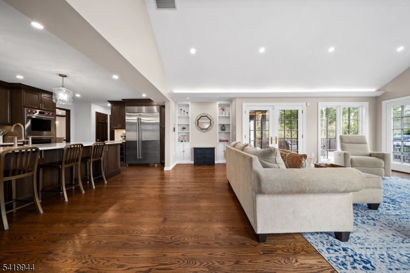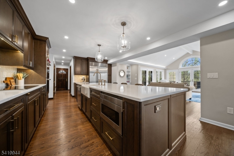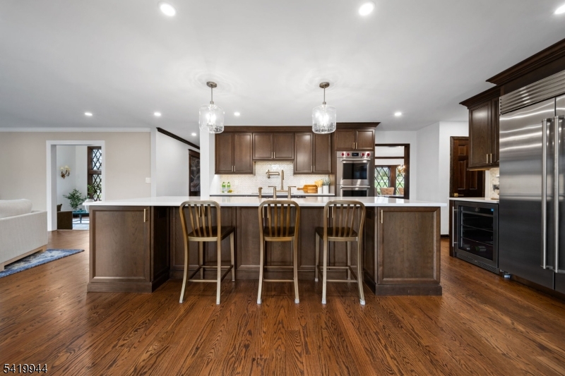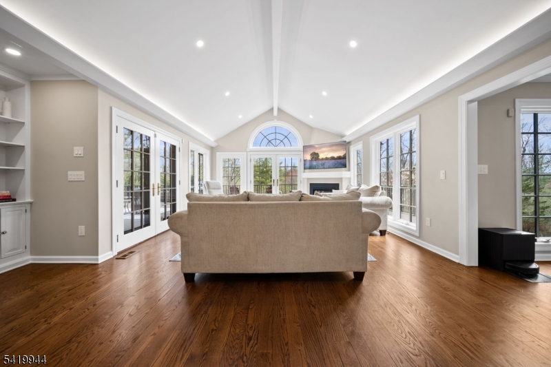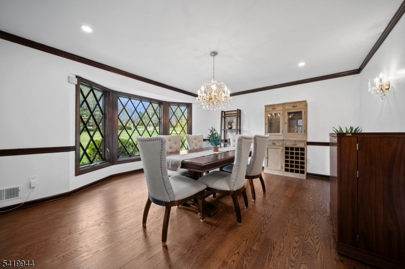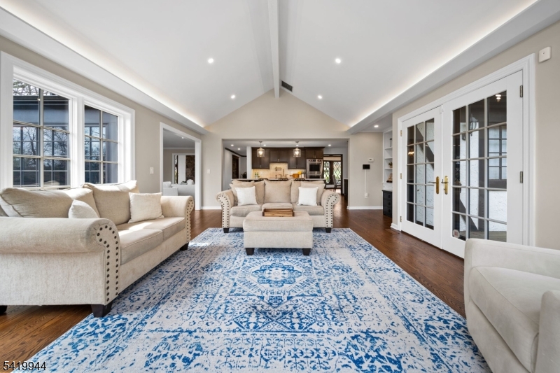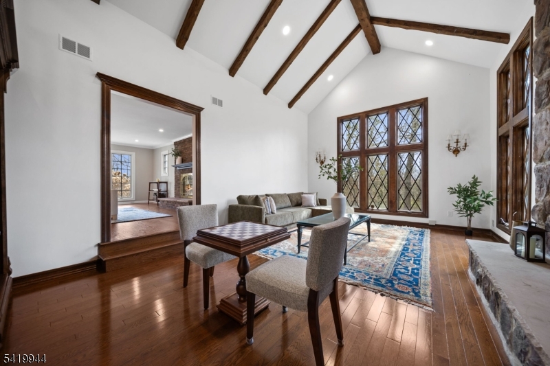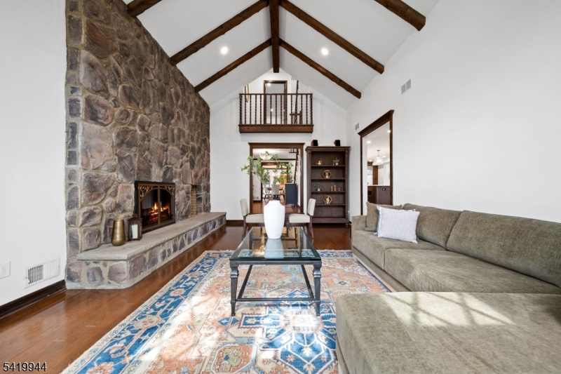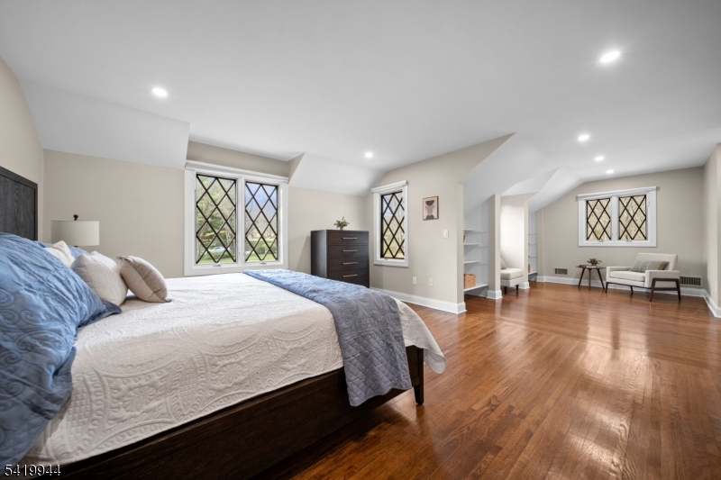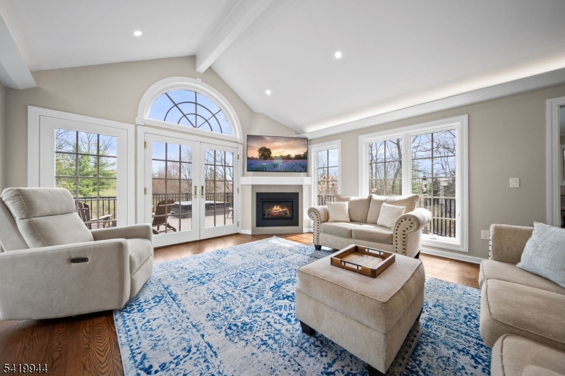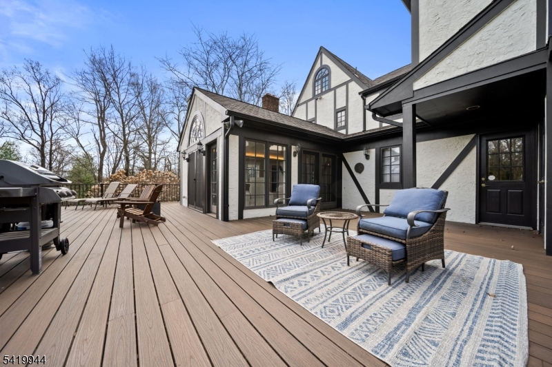 Welcome to this extraordinary Tudor Colonial set on three private acres, offering four levels of elegant living space. Architectural details include a dramatic formal living room with cathedral ceilings, a stone fireplace, and floor-to-ceiling diamond-pane windows. A banquet-sized dining room leads to a stunning chef?s kitchen (2024) with Sub-Zero and Wolf appliances, custom cherry cabinetry, quartz countertops, and an 11-foot center island. The kitchen flows seamlessly into a cozy den with a wood-burning fireplace and a sun-filled family room with a gas fireplace, both overlooking beautifully landscaped grounds and a newer Trex deck. Upstairs, four spacious bedrooms include a luxurious primary suite with smart shades, dual walk-in closets, and a spa-like bath with walnut cabinetry, soaking tub, oversized shower and water closet. A secondary en-suite and two additional bedrooms complete the level. The third floor offers flexible bonus space, currently used as an office and TV room. The finished lower level features a walk-out sitting area, gym, game room, wet bar, full bath, workshop, and storage. Additional highlights include a paver driveway, epoxy-finished three-car garage with first-floor access, and a spacious laundry room. This home offers a rare blend of elegance, comfort, and privacy, and is just minutes to Midtown-direct Morristown Train station, a vibrant downtown, parks, and trails. Come see it for yourself today!