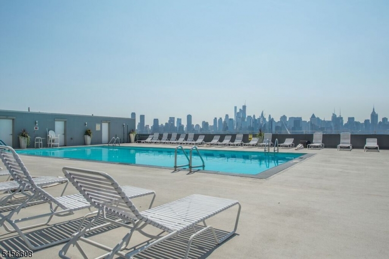 Contemporary perfection at luxurious Tower West condominium! No expense was spared in the sleek top-to-bottom renovation of this stunning E-line home. Step through a gracious foyer with a generous closet into a chef-caliber loft-style kitchen featuring chic granite countertops and dining bar with storage, sparkling stainless steel appliances, built-in wine fridge, and abundant cabinetry. Elegant dark wood plank floors flow throughout. The oversized bedroom is a tranquil retreat, perfectly paired with a spa-like bath showcasing subway and accent tile and a frameless glass-enclosed shower. Closets abound. Massive windows bathe the space in natural light. Step onto your expansive private terrace to savor glowing sunsets cocktail or coffee in hand. One-car assigned parking available for a monthly fee. Tower West offers 24-hr concierge, on-site management, heated outdoor pool, grilling promenades, lush play area, gym with sauna, and jaw-dropping NYC views. All this plus an unbelievably quick Manhattan commute. Don’t miss your chance to own this shelter-magazine-worthy home in a vibrant, full-service community. Book your visit today!