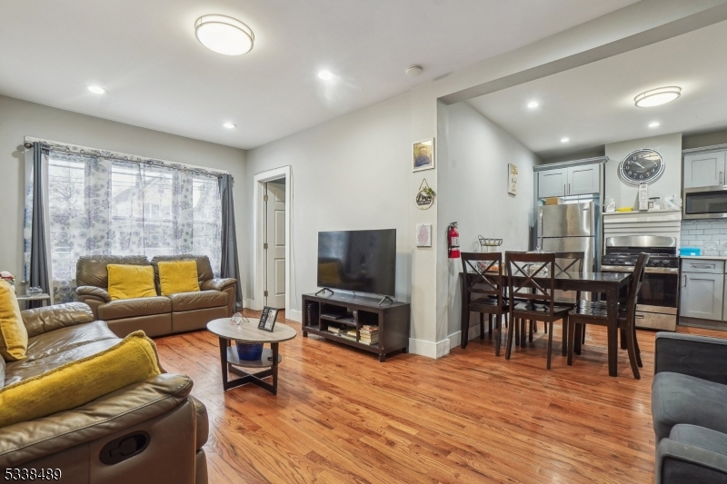 Income producing property: 4 brs / 2.5-bath colonial is conveniently located within walking distance of NYC buses. The basement includes a half bath and a flexible bonus room that can serve as a fourth bedroom. Situated in a light commercial area, the property also features an income-generating business yielding $1,700 per month, an excellent opportunity for passive income and mortgage offset. Current annual rent roll $44,400 (potential annual rent roll $54,000 / annual taxes $13,546).). Unit 1 – The first level boasts an updated eat-in kitchen with quartz counter tops, gray shaker cabinets, crown molding, and S/S appliances. This level also comes with an expansive living room accommodating any oversized furniture and a bedroom, for those who prefer to limit their use of stairs. The second level comes with two generously sized bedrooms with huge closet space. The full bathroom includes a luxurious soaking tub with built-in shower accessories as well as an elegant woodgrain vanity. This thoughtfully designed bathroom serves as a serene retreat, perfect for unwinding after a long day. The basement in addition to the half bath and possible 4th brs, has direct access to the spacious attached garage. Additional highlights of this magnificent home include pristine h/d floors throughout, recessed lighting, updated plumbing and electrical systems. For those who commute, proximity to NYC transportation, 15 Minutes from Newark Airport and 35 Minutes from Manhattan