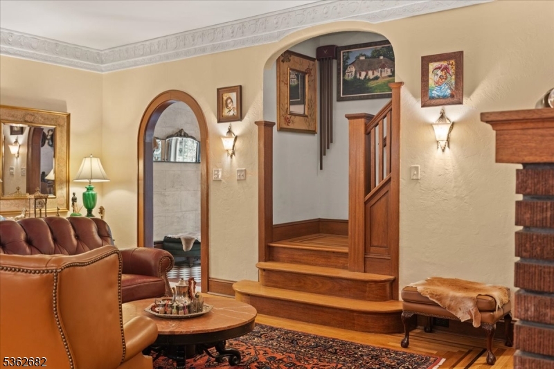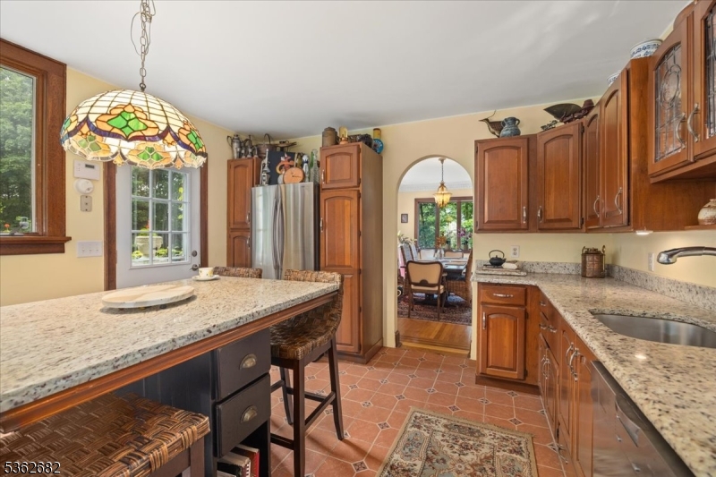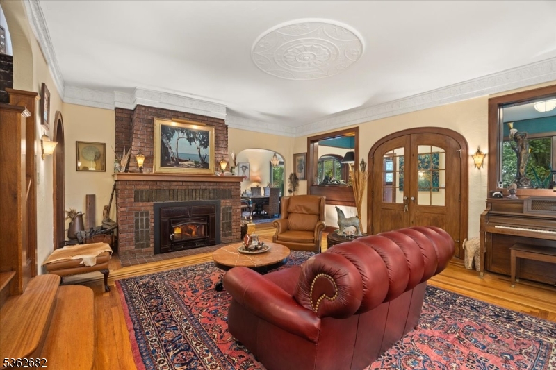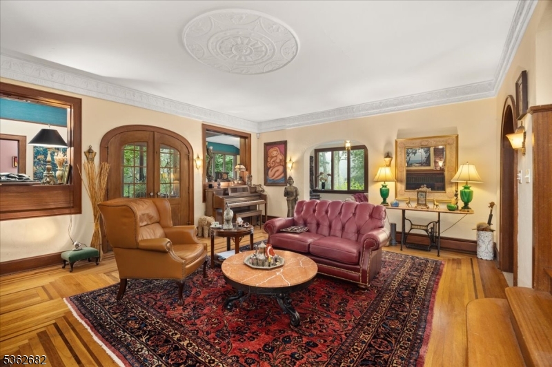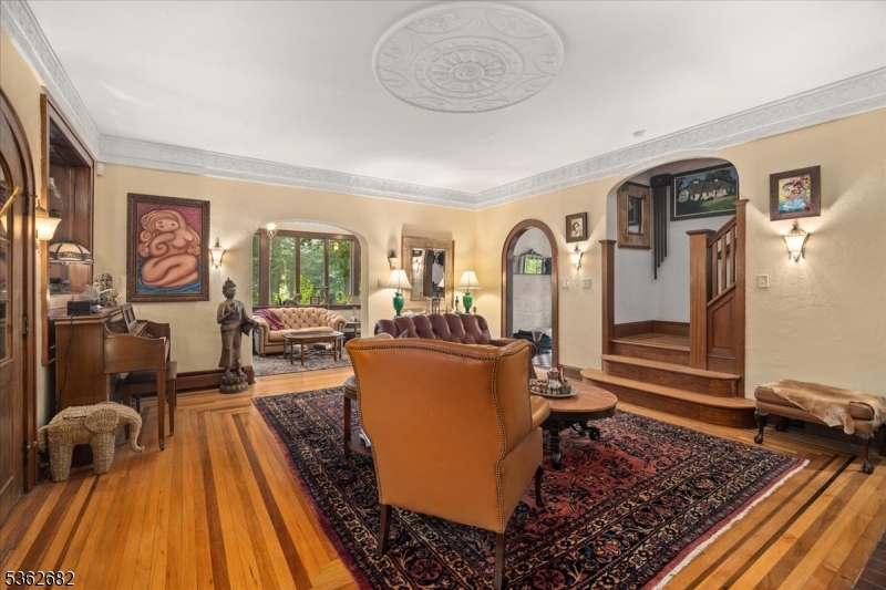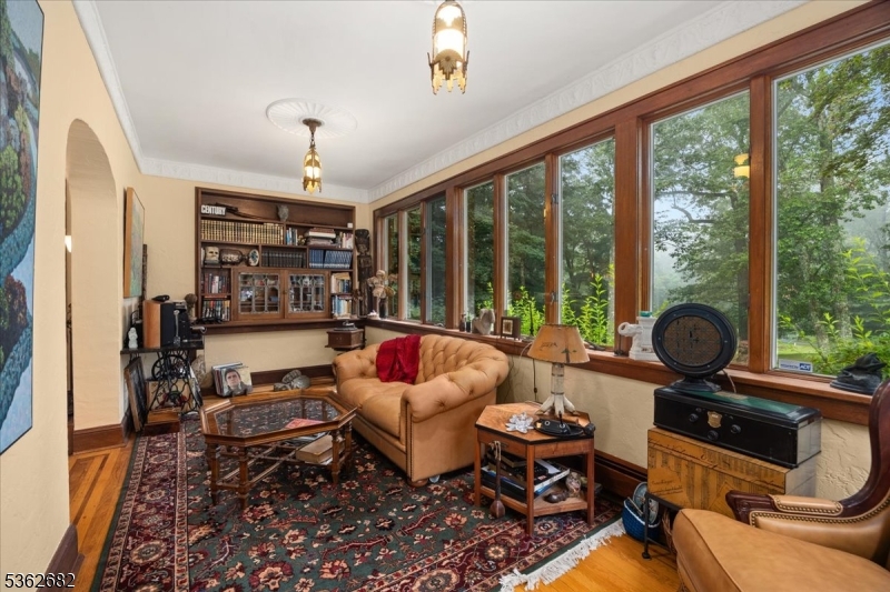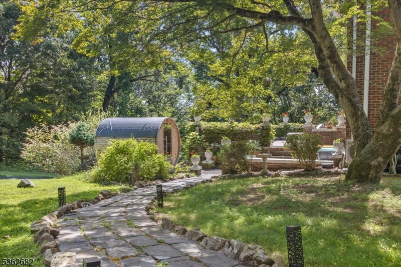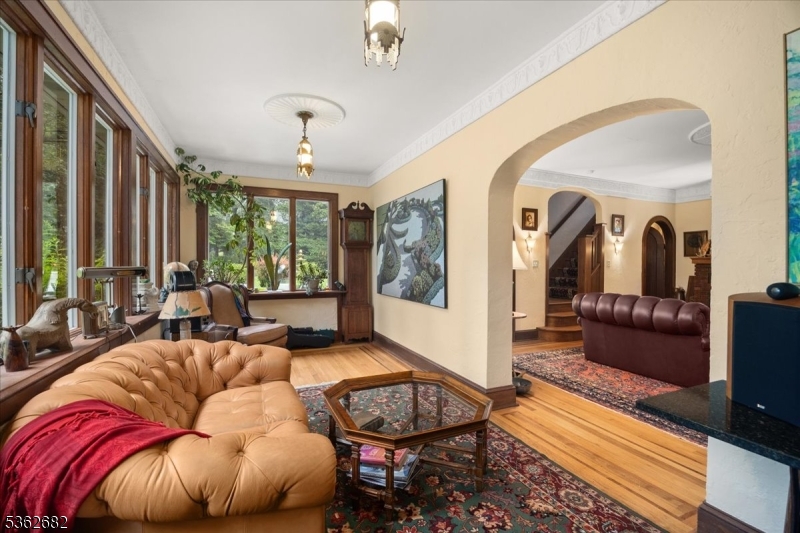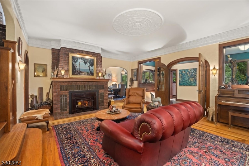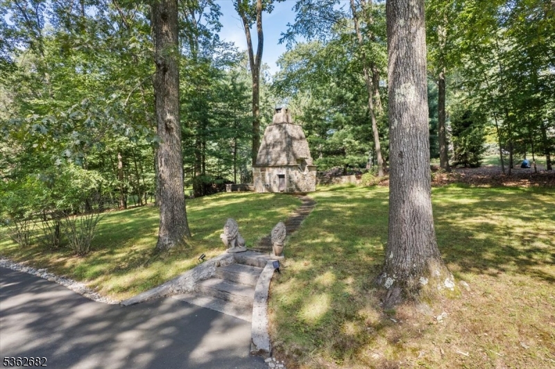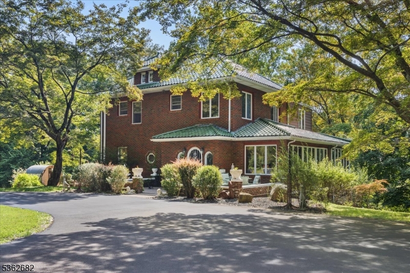 Welcome to this beautiful custom Mediterranean-style home in the desirable Backhus Estates, set on just over 5 acres of lush, private property. Originally built in 1937, this home is filled with charm and character you won’t find anywhere else. Enter through the arched foyer into the spectacular living room with custom hand-carved mahogany moldings, ornamental trim, high ceilings, original lighting and a wood burning fireplace. An arched doorway leads to the conservatory, surrounded by custom bookcases, and a cozy library just off the living room. The large formal dining room with a french door that opens to the patio and picturesque landscapes of surrounding area. The eat-in kitchen offers plenty of space and direct access outdoors for easy indoor-outdoor living. Upstairs you’ll find the primary bedroom with its own bath, along with three additional bedrooms, an office, and another full bath. The finished walk-out ground level adds additional living space, complete with a full bath and kitchen perfect for guests, a studio, or an in-law suite. Outside, enjoy oversized circular driveway, mature trees, tranquil surroundings that make this property feel like your own private retreat. New solar panels with battery back up and two EV charging stations. This unique estate blends timeless craftsmanship with endless potential. You are not only buying a home but buying a piece of history.
