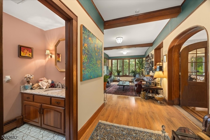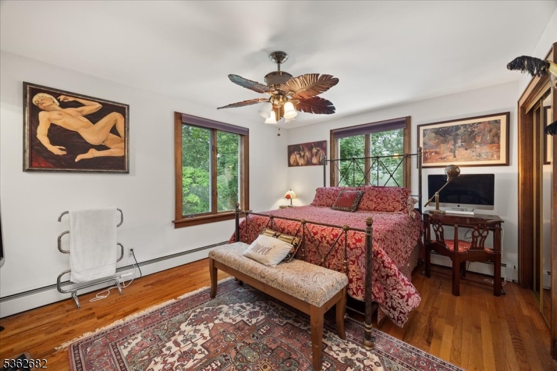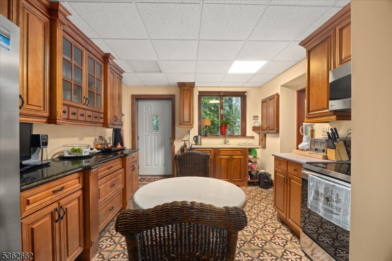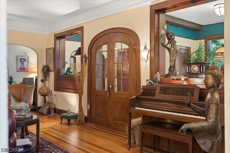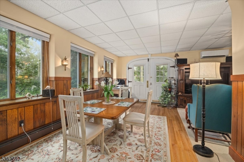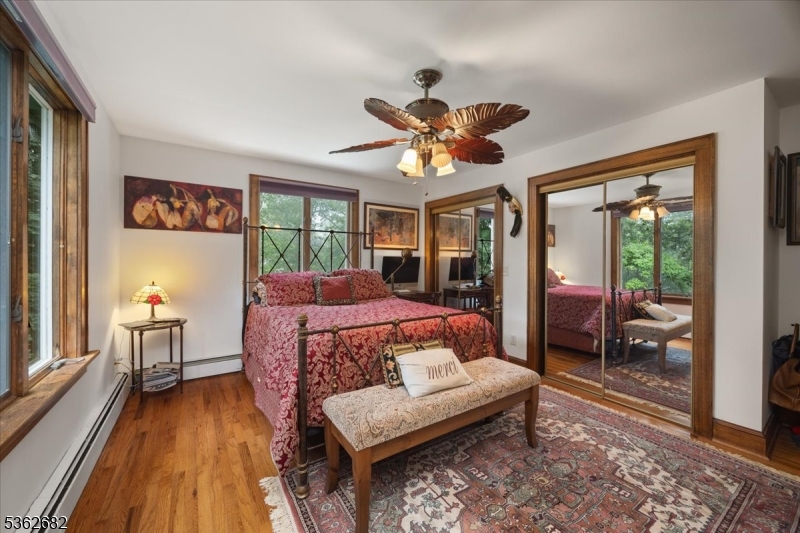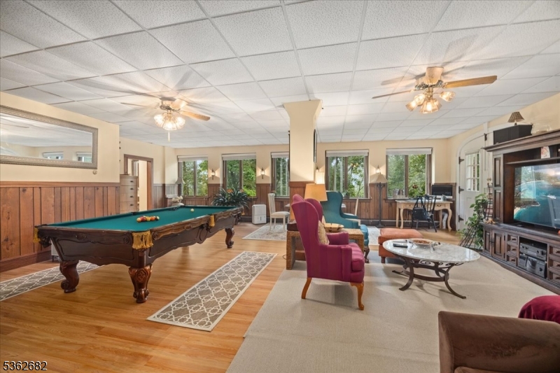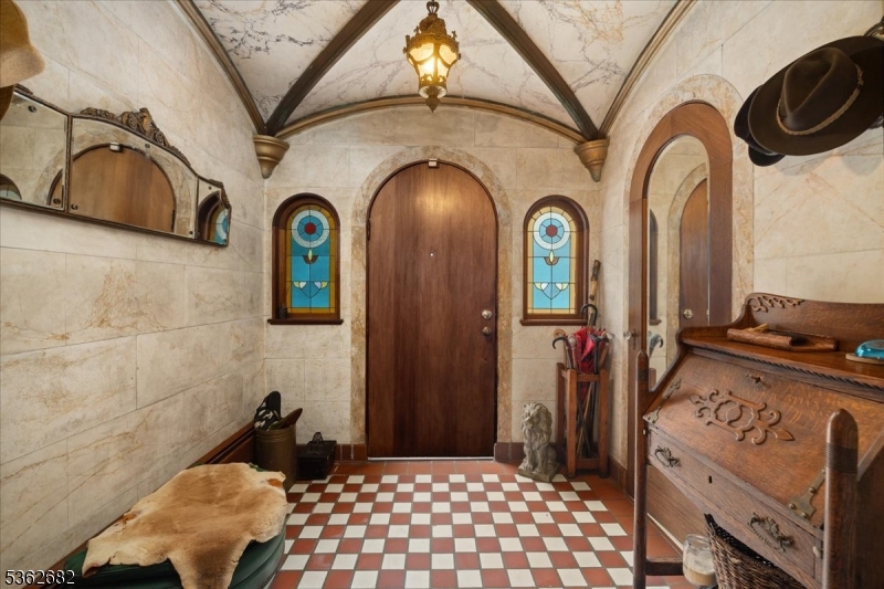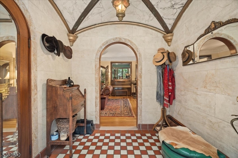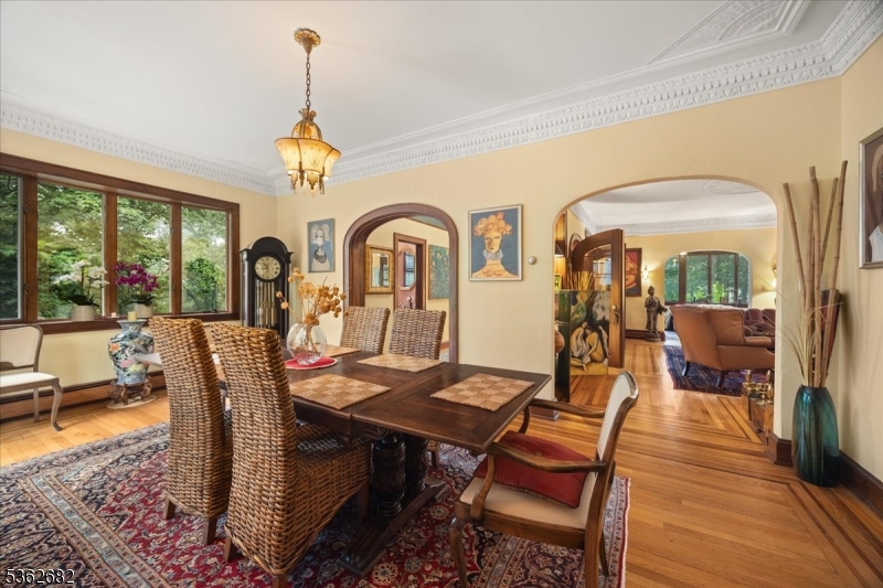 Welcome to this beautiful custom Mediterranean-style home in the desirable Backhus Estates, set on just over 5 acres of lush, private property. Originally built in 1937, this home is filled with charm and character you won’t find anywhere else. Enter through the arched foyer into the spectacular living room with custom hand-carved mahogany moldings, ornamental trim, high ceilings, original lighting and a wood burning fireplace. An arched doorway leads to the conservatory, surrounded by custom bookcases, and a cozy library just off the living room. The large formal dining room with a french door that opens to the patio and picturesque landscapes of surrounding area. The eat-in kitchen offers plenty of space and direct access outdoors for easy indoor-outdoor living. Upstairs you’ll find the primary bedroom with its own bath, along with three additional bedrooms, an office, and another full bath. The finished walk-out ground level adds additional living space, complete with a full bath and kitchen perfect for guests, a studio, or an in-law suite. Outside, enjoy oversized circular driveway, mature trees, tranquil surroundings that make this property feel like your own private retreat. New solar panels with battery back up and two EV charging stations. This unique estate blends timeless craftsmanship with endless potential. You are not only buying a home but buying a piece of history.