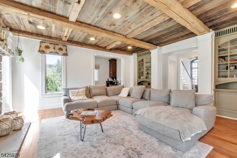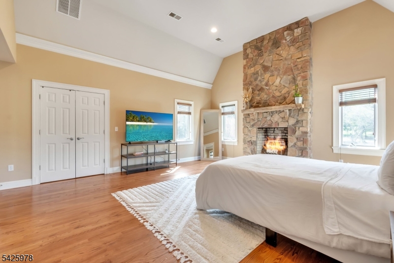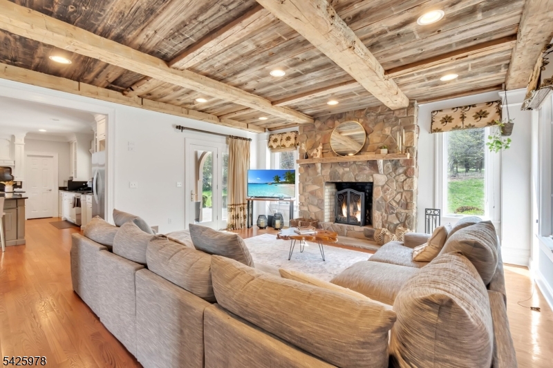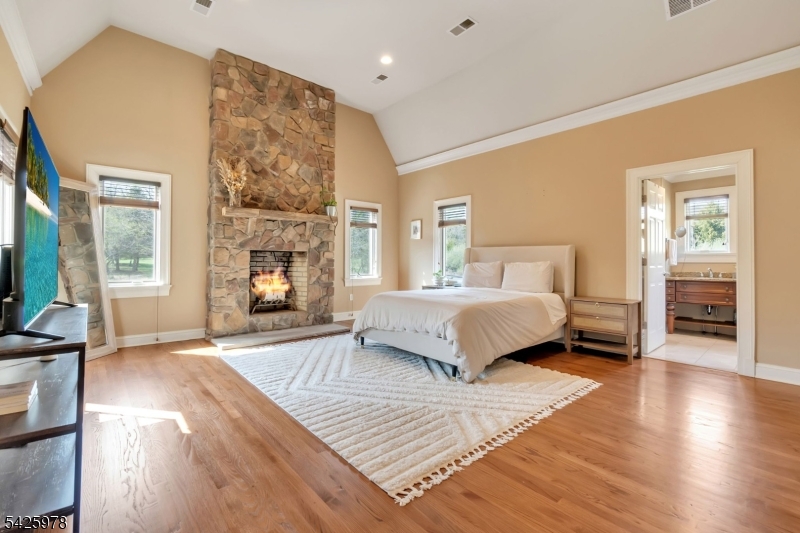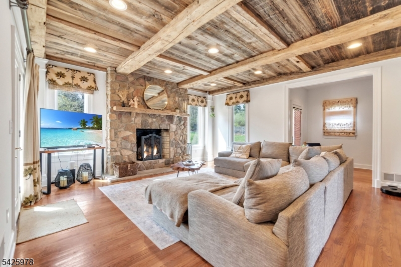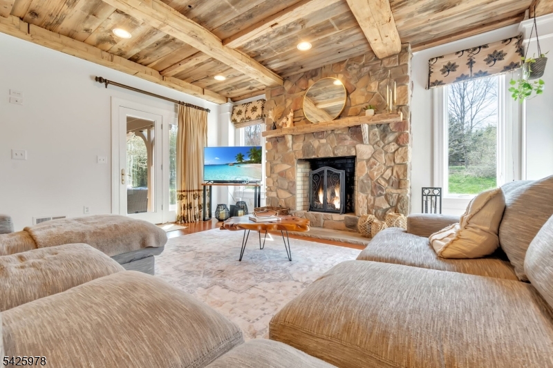 Welcome to this stunning custom home thoughtfully designed & beautifully maintained, this residence offers a seamless blend of warmth, character, & modern functionality. Step inside to find an inviting living room highlighted by a cozy wood-burning stove & a striking reclaimed wood ceiling, creating a perfect balance of rustic charm & comfort. The spacious kitchen is a true centerpiece, featuring custom cabinetry, granite countertops, a large center island, pantry, & a butler?s pantry?ideal for both everyday living and entertaining. The kitchen opens to a dramatic two-story dining room with a wall of windows that flood the space with natural light. An open second-floor hallway overlooks the dining area, enhancing the home?s airy & architectural appeal. All four bedrooms feature soaring ceilings, including a luxurious primary suite complete with a floor-to-ceiling fireplace, ample closet space, & a spa-inspired bath.The third level offers a dedicated office along with easily accessible storage?no pull-down attic stairs required. The finished basement expands your living space with a media room & a bar area with room for a pool table, perfect for entertaining or relaxing at home. Outside, enjoy beautifully landscaped grounds with mature trees, landscape lighting, & a serene patio setting?ideal for gatherings or quiet evenings surrounded by nature. A truly one-of-a-kind property offering custom craftsmanship and exceptional living.