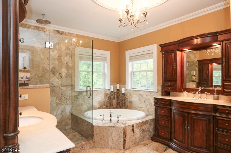 This majestic 5 Bedroom home is the Builder’s Own Personal Estate which is situated on 2.62 Private Acres! Located on a serene cul-de-sac, this carefully and thoughtfully designed, open-concept 6000 sq ft manor, which includes 1200 sq ft of partially finished WO basement, pays attention to every detail, is conveniently located near multiple train stations, and major highways, and attends highly ranked Mountain Lakes High School. The stunning facade of stucco & natural stone with superior details is certain to impress! You will discover many delights around every corner!